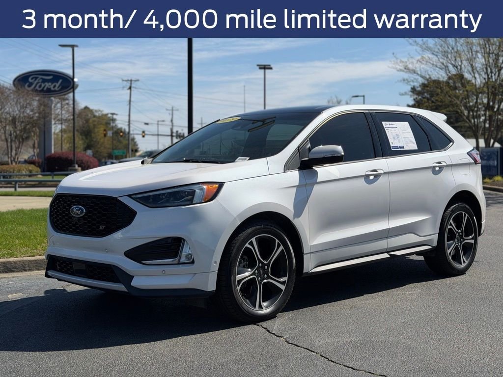 Ford Blue Certified Details: and 11,000 FordPass Rewards Points to use toward first maintenance visit. Limited Warranty: 3 Month/4,000 Mile (whichever comes first) after new car warranty expires or from certified purchase date. Transferable Warranty. Warranty Deductible: $100. 139 Point Inspection. Roadside Assistance. Vehicle History. Recent Arrival! Clean CARFAX. 2019 Ford Edge ST AWD, 110V/150W AC Power Outlet, Adaptive Cruise Control w/Stop & Go, Adaptive LED Headlamps, Auto-Dimming Driver's Sideview Mirror, Cooled Front Seats, Enhanced Active Park Assist, Equipment Group 401A, Evasive Steering Assist, Foot-Activated Hands-Free Liftgate, Front 180 Degree Camera, Heated Rear-Seats, Lane Centering, Memory seat, Navigation System, Panoramic Vista Roof, Perimeter Alarm, Power driver seat, Power Liftgate, Power steering, Power windows, Remote keyless entry, Remote Start System, Steering wheel memory, Steering wheel mounted audio controls, Universal Garage Door Opener (UGDO), Voice-Activated Touchscreen Navigation System, Wireless Charging Pad.