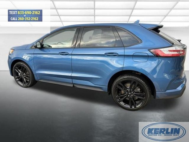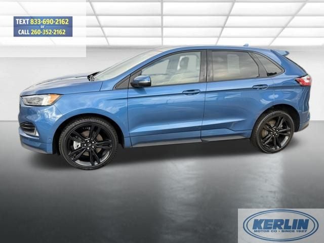 2019 Ford Edge ST Blue AWD. 2019 Ford Edge ST CARFAX One-Owner. This 1-owner 2019 Ford Edge ST AWD delivers true performance SUV capability with everyday comfort. Powered by the 2.7L V6 EcoBoost engine paired to an 8-speed automatic transmission, the ST model brings serious power along with Ford Performance-tuned suspension and confident all-wheel drive handling. With 94,000 miles, its been driven and enjoyed the way a performance SUV should be. Finished in Performance Blue Metallic with Ebony leather-trimmed seats and suede inserts, this Edge ST stands out immediately. The 401A Equipment Group loads it up with a panoramic Vista roof, navigation, adaptive cruise control with stop-and-go and lane centering, enhanced active park assist, wireless charging, heated rear seats, cooled front seats, remote start, and a hands-free power liftgate. The B&O 12-speaker sound system delivers premium audio to match the premium feel. It was also optioned with 21-inch premium painted wheels and the Cold Weather Package, adding a heated steering wheel, heated front and rear seats, windshield wiper de-icer, and all-weather floor liners making it as practical as it is quick. This Edge ST blends sport sedan performance with SUV versatility. Strong ownership history, high-content trim level, and aggressive styling make this one stand out from the typical midsize SUV. If you want something that moves when you press the pedal but still handles daily life with ease, this is it.