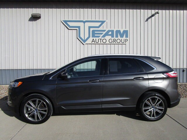 2019 Ford Edge Titanium AWD | Magnetic | Luxury & AWD Capability. Recent Arrival at Team Ford Denison, IA! Magnetic 2019 Ford Edge Titanium AWD powered by a turbocharged EcoBoost 2.0L and smooth 8-speed automatic. Enjoy 21/28 City/Highway MPG plus premium features like leather seating, heated front seats, remote start, SYNC 3, Apple CarPlay/Android Auto, and BLIS blind spot monitoring. Stylish, efficient, and ready for Iowa roads. Team Ford | Denison, Iowa. Call or click today this Edge wont last long!