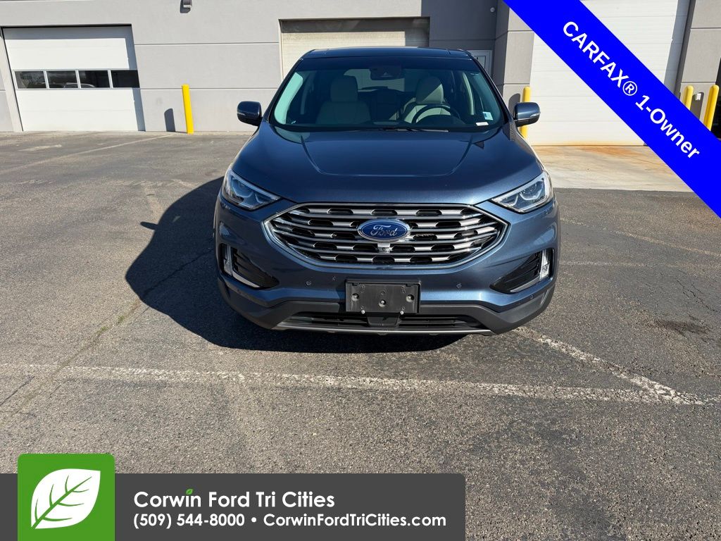 Recent Arrival! Carfax One-Owner. Priced below KBB Fair Purchase Price! 2019 Ford Edge Titanium AWD EcoBoost 2.0L I4 GTDi DOHC Turbocharged VCT Blue Metallic. See us today at Corwin Ford Tri-Cities. Family owned for over 100 years! Excellent selection of New and Used vehicles, Financing options. Serving Pasco, Kennewick, Richland, Walla Walla, Hermiston, Umatilla, Yakima, Spokane, Sunnyside, Grandview, Dayton, Prescott, Benton County, Franklin County, Yakima County, Spokane County, Adams County, Grant County, and the Greater Columbia Basin.