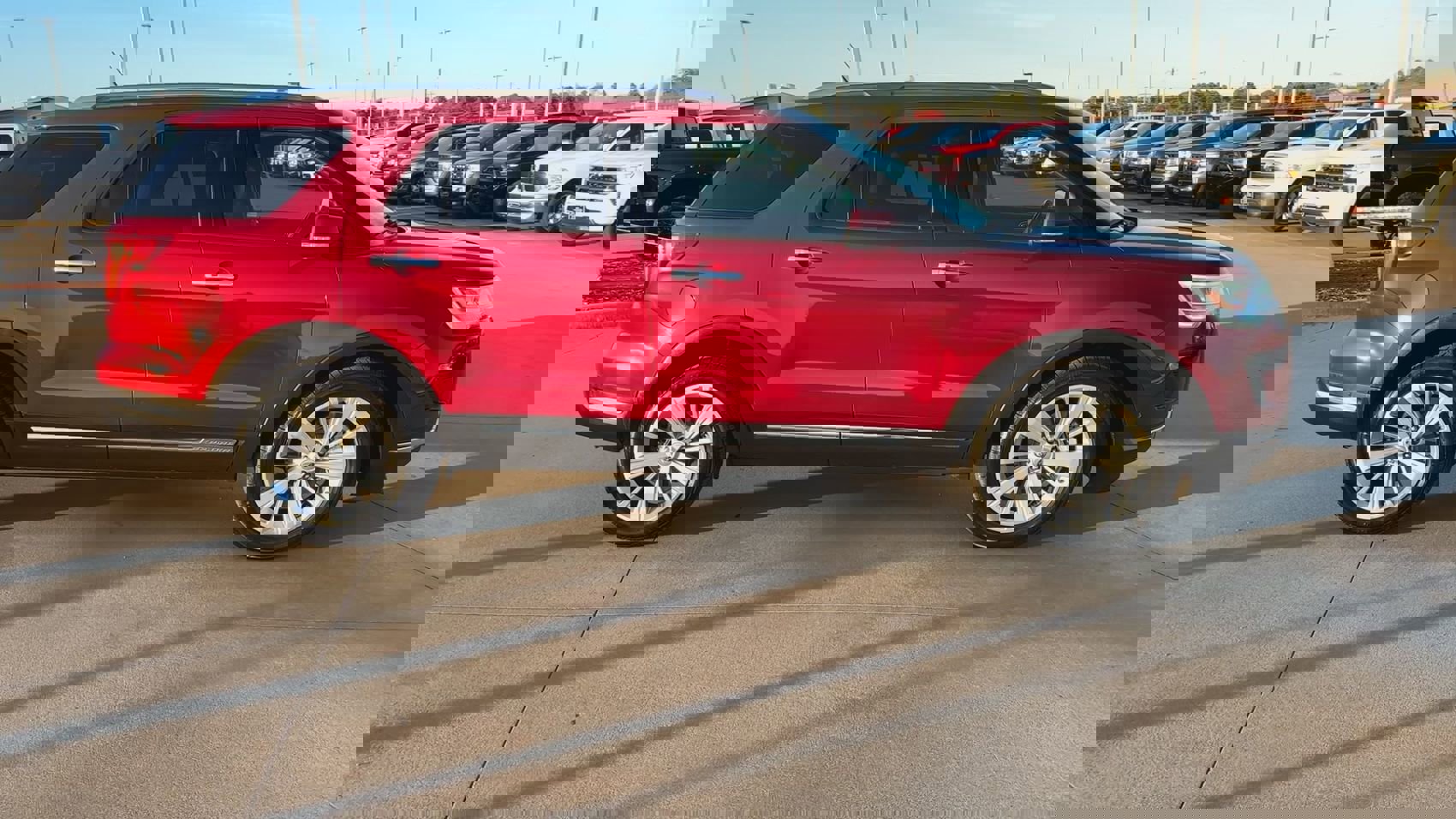 This 2019 Ford Explorer Limited in Ruby Red Metallic comes with the following features: 2.3L I4 EcoBoost 6-Speed Automatic with Select-Shift FWD 2.3L I-4 EcoBoost, Ford Safe & Smart Package (Adaptive Cruise Control & Fwd Collision Warning, Auto High-Beam Headlights, Lane-Keeping System, and Rain-Sensing Wipers (Front Only)), 12 Speakers, 2nd Row Bucket Seats w/Power-Assist Fold, 2nd Row Console, 3.39 Non-Limited-Slip Axle Ratio, 3rd row seats: split-bench, 4-Wheel Disc Brakes, ABS brakes, Air Conditioning, Alloy wheels, AM/FM radio: SiriusXM, AppLink/Apple CarPlay and Android Auto, Auto tilt-away steering wheel, Auto-dimming Rear-View mirror, Automatic temperature control, Brake assist, Bumpers: body-color, Compass, Delay-off headlights, Driver door bin, Driver vanity mirror, Dual front impact airbags, Dual front side impact airbags, Electronic Stability Control, Emergency communication system: 911 Assist, Enhanced Active Park Assist, Exterior Parking Camera Rear, Four wheel independent suspension, Front anti-roll bar, Front Bucket Seats, Front Center Armrest, Front dual zone A/C, Front fog lights, Front reading lights, Fully automatic headlights, Garage door transmitter. Garage door. Garage. In the city. In the highway. In the city. In the city. In the highway. In the city. In the city. In the city. In the city. In the city. In the city. In the city. In the city. In the city. In the city.