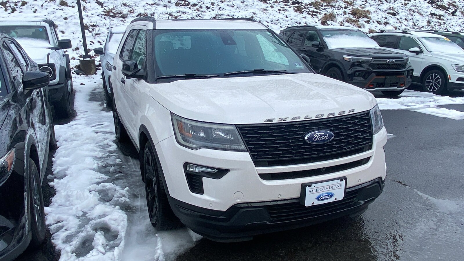CARFAX One-Owner. Recent Arrival! White Platinum Metallic Tri-Coat 2019 Ford Explorer Sport 4WD 6-Speed Automatic with Select-Shift 3.5L V6. Odometer is 2219 miles below market average! Price excludes sales tax, DMV, $898 doc fee and $995 used car prep fee. All vehicles are cosmetically as-is. Car may have minor road chips, light scratches, wheel scuffs, etc. Depending on the age of the vehicle, normal wear and tear should be anticipated. Pre-owned vehicles prices exclude any government fees such as taxes, MVC registration and/or tire tax and $995 used car prep fee. Vehicle may also be subject to a safety recall; go to www.safercar.gov. Used car sale prices include any dealer discount if applicable. Not responsible for typographical errors. The listed details are to be used as an informational listing of available equipment on this vehicle.