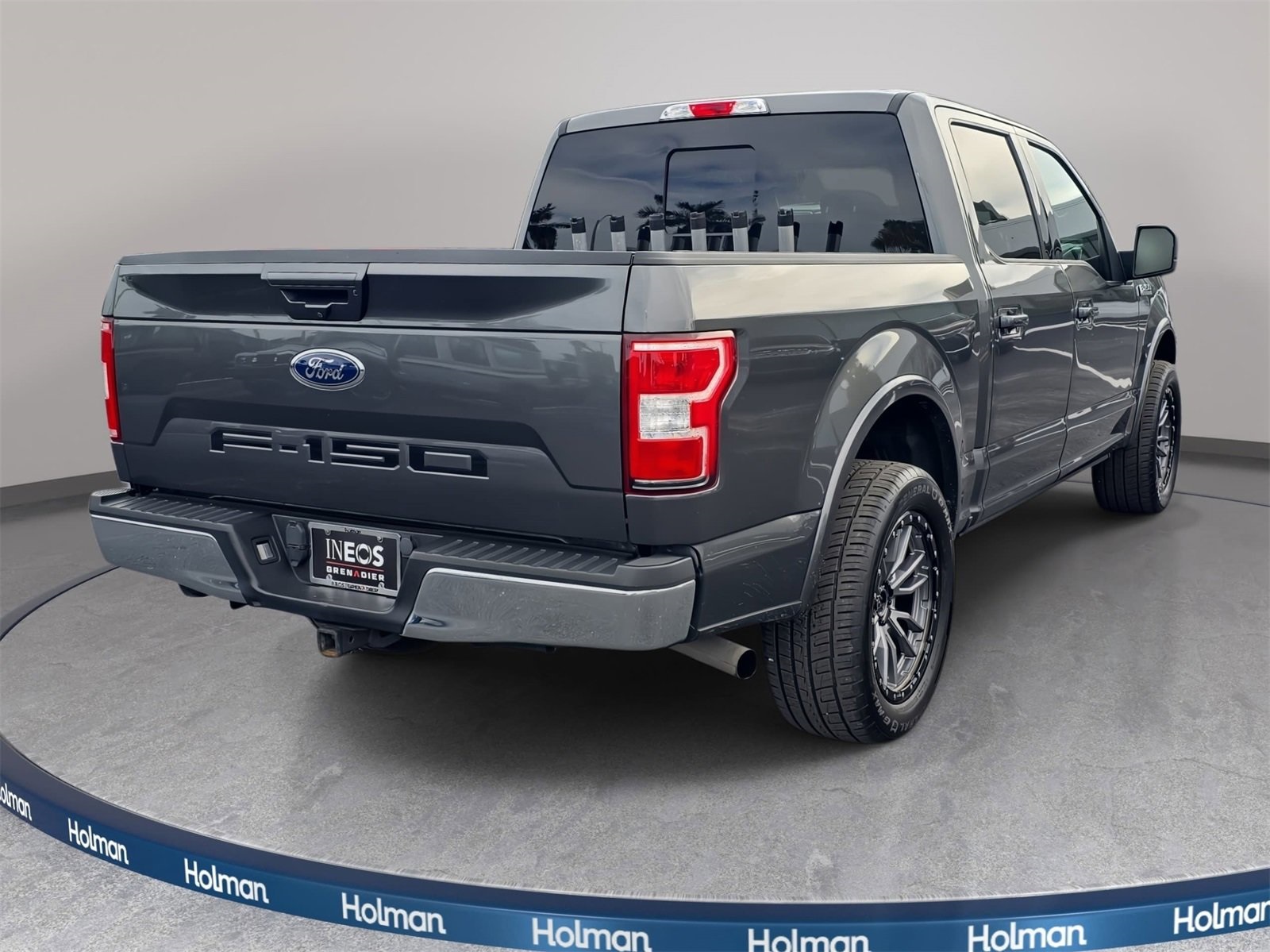 Holman INEOS Grenadier is pumped up to offer this great 2019 Ford F-150 Magnetic Metallic Lariat with the following features: ABS brakes, Alloy wheels, Compass, Electronic Stability Control, Equipment Group 500A Base, Front dual zone A/C, Heated door mirrors, Heated front seats, Illuminated entry, Low tire pressure warning, Navigation System, Remote keyless entry, Traction control. 2019 Ford F-150. Price does not include sales tax, tags, registration fees, government fees, electronic filing fee of $399, and Pre-Delivery Service Charge of $999.