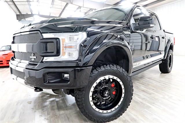This 2019 Ford F-150 Shelby Super Snake is a high-performance vehicle with a 755hp supercharger. It features a clean Carfax, is one of 300 units, and comes with premium upgrades like a carbon fiber interior and navigation.