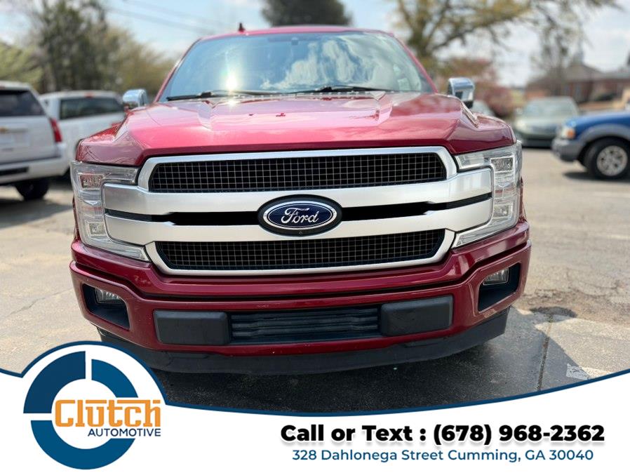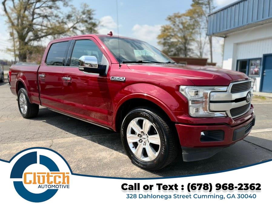 This 2019 Ford F-150 Platinum 2WD SuperCrew 6.5'' Box is available for sale in Cumming, Georgia. It features a Ruby Red Metallic exterior with Dark Marsala leather interior, and is equipped with a 5.0L V8 engine and rear wheel drive. The vehicle is in stock and priced at $20,999.