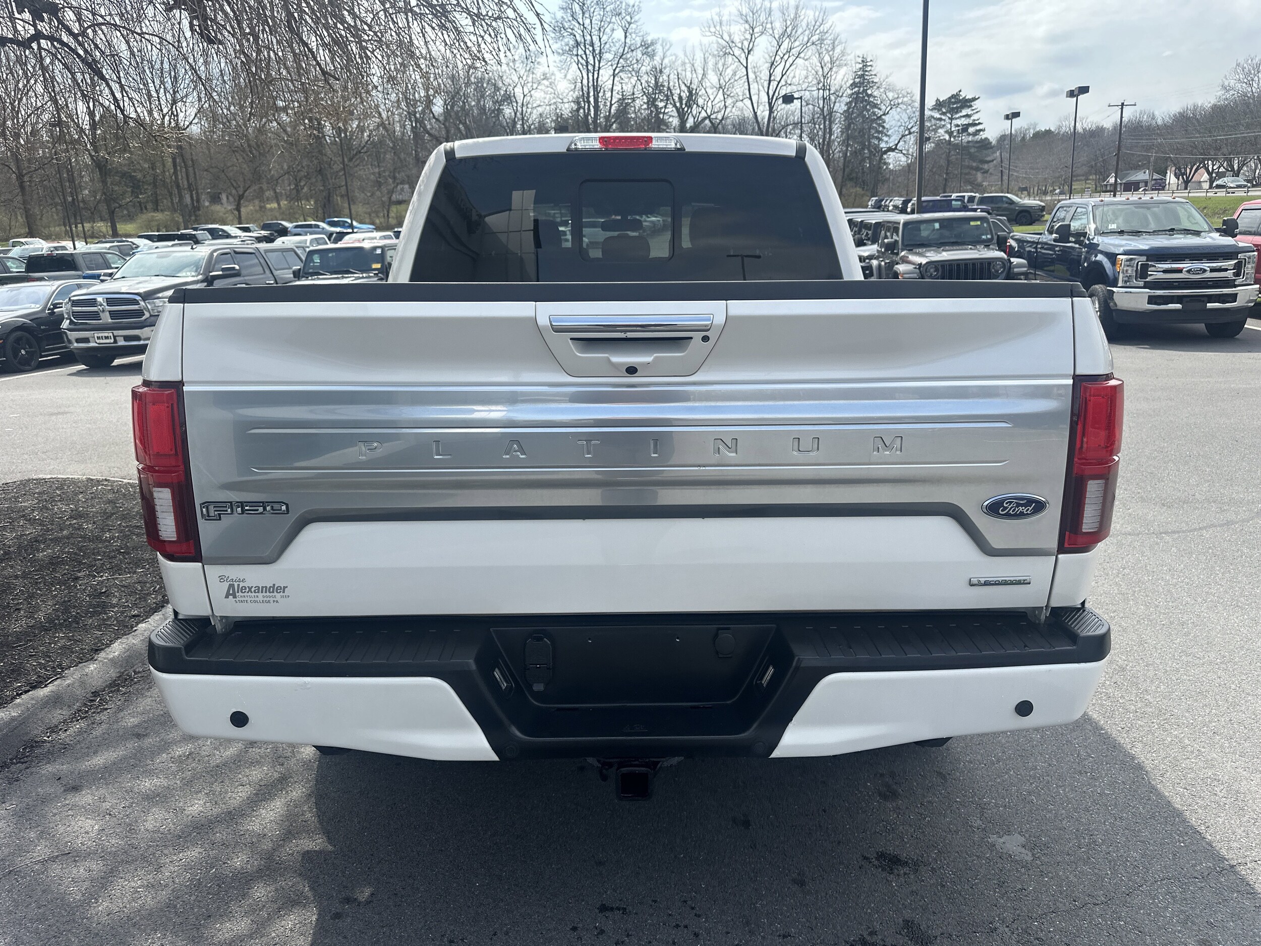 2019 Ford F-150 Platinum 4WD F-150 Platinum, 3.5L V6 EcoBoost, 10-Speed Automatic, 4WD, White Platinum Clearcoat Metallic, Black Leather. Local trade, heated and vented front seats, remote start, heated wheel, power seat, rearview camera, collision assist, cross path, B & O system, trailer brake controller, twin panel moonroof. Recent arrival! For more information call sales at 814-325-7489. A negotiable administration fee, up to $464, may be added to the price of the vehicle.