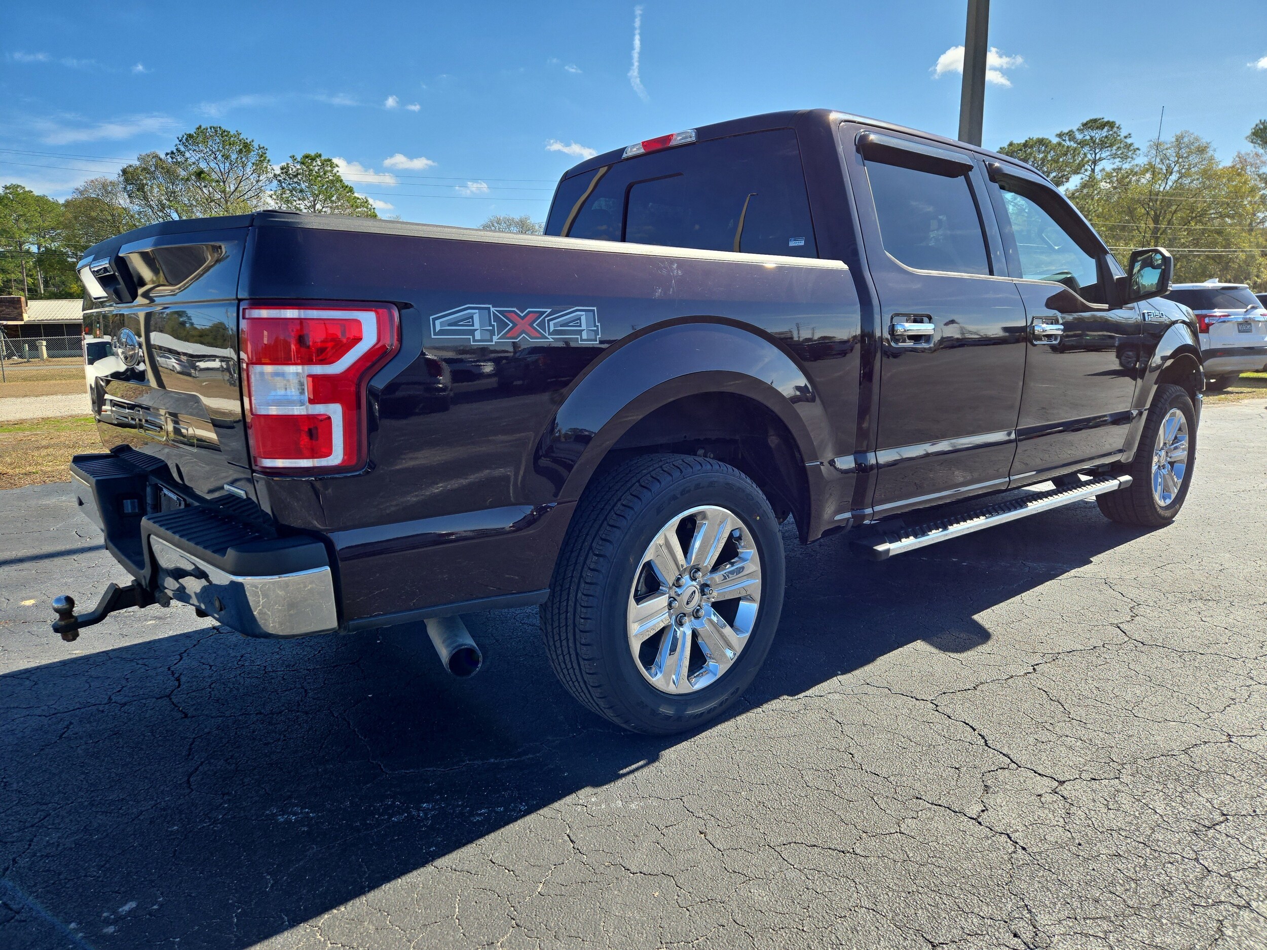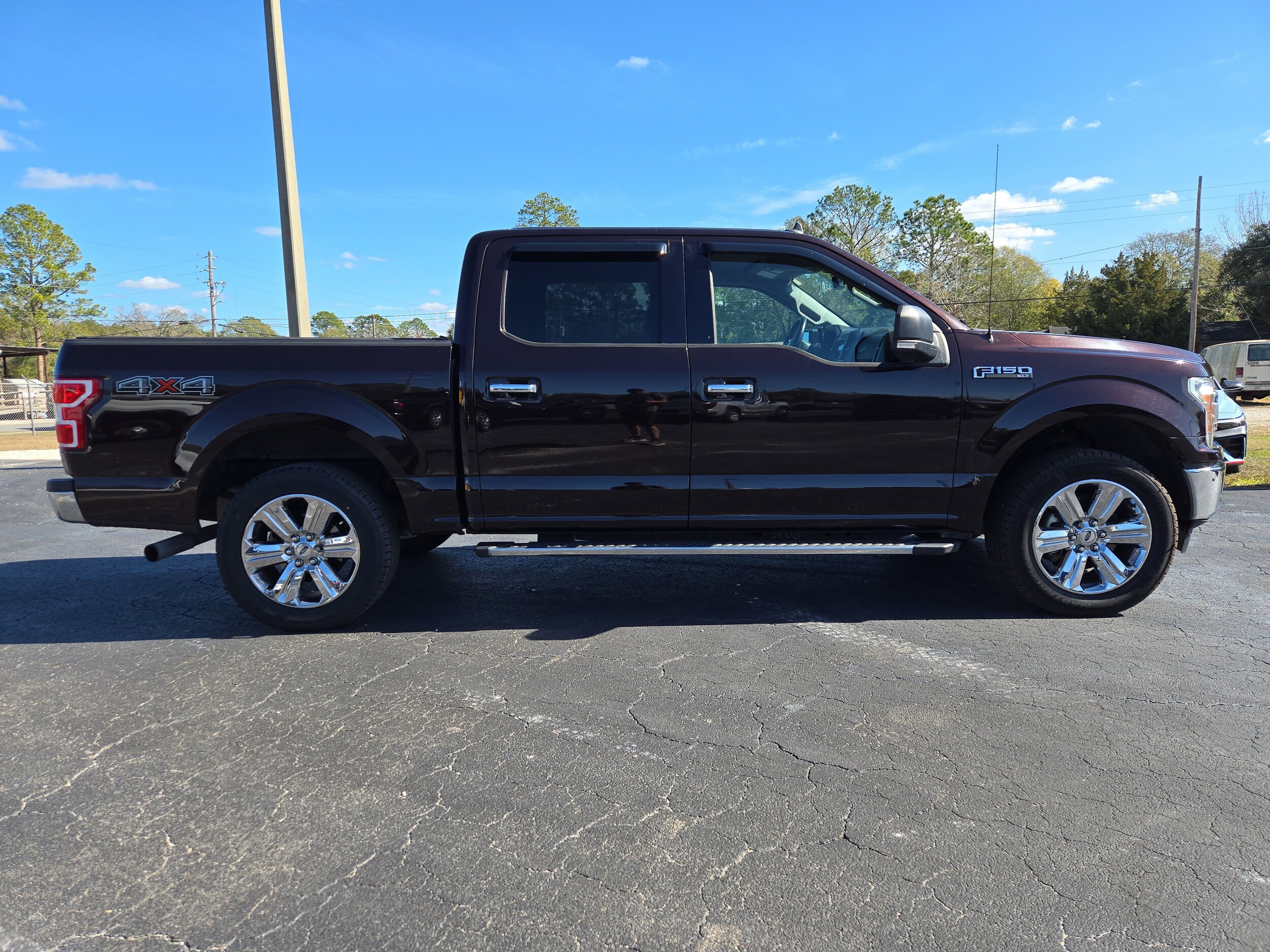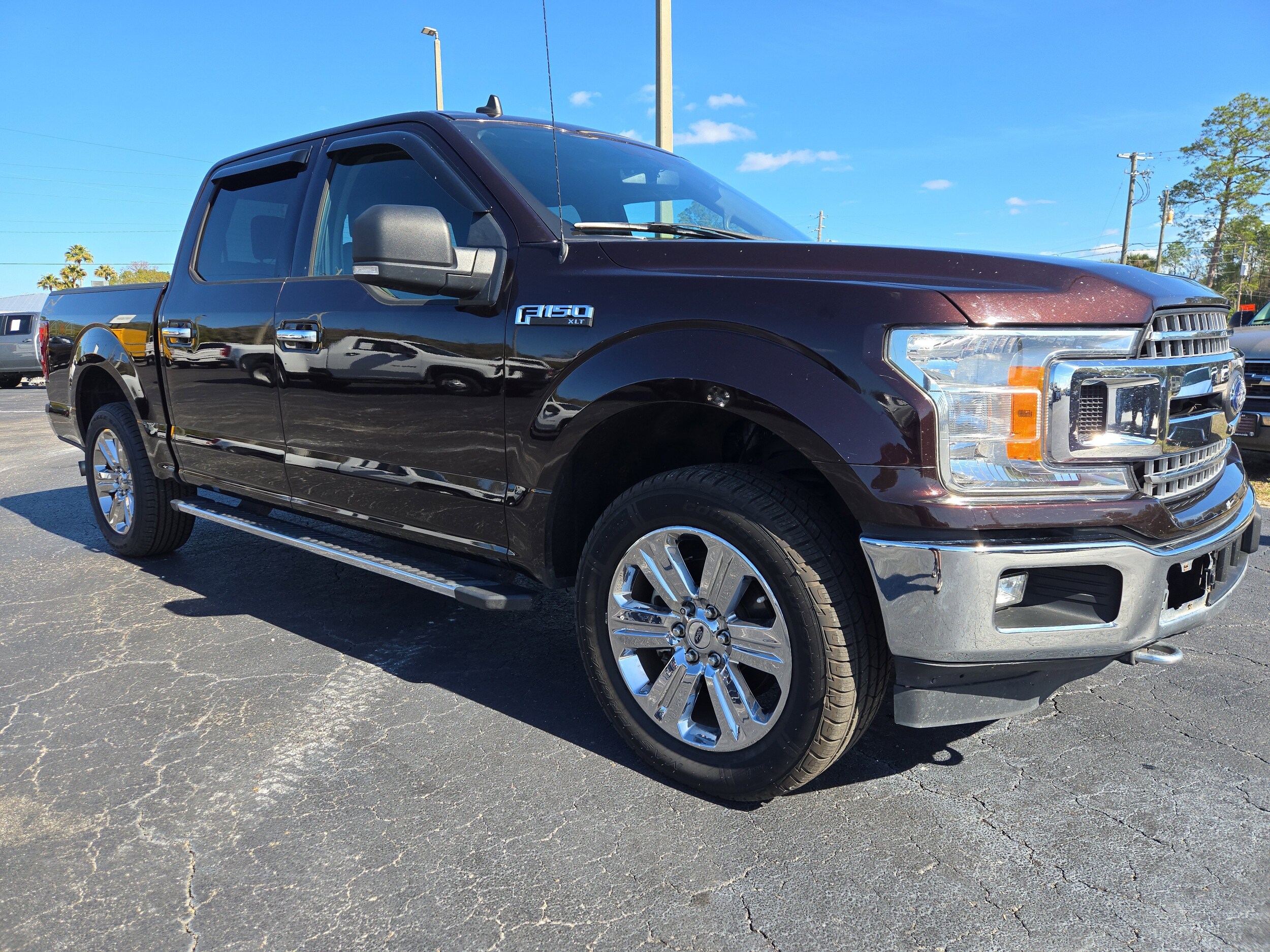 Check out this sharp Dark Red 2019 Ford F-150 XLT SuperCrew 4x4! Powered by the efficient EcoBoost 2.7L Twin Turbo V6 and paired with a 10-speed automatic, this truck is ready for work or play. The XLT Chrome Appearance Package, 20-inch chrome wheels, and chrome bumpers give it an extra touch of style. Enjoy added convenience with the Trailer Tow Package, Class IV hitch, tailgate step, and BoxLink cargo system. Inside, you'll find an 8-inch touchscreen with SYNC infotainment, Apple CarPlay/Android Auto, voice-activated navigation, and FordPass Connect Wi-Fi hotspot. Full coverage rubber floor mats, heated mirrors, reverse sensing system, and a power locking tailgate make life easier. Safety features include front automatic emergency braking, a rearview camera, pre-collision alerts, and trailer stability control. With the spacious SuperCrew cab and spray-in bed liner, this F-150 is both comfortable and ready for any job. Don't miss your chance-schedule a test drive today!