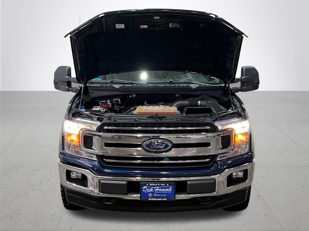 Blue 2019 Ford F-150 XLT 4WD 2.7L V6 EcoBoost 10-Speed Automatic. Clean Carfax. Locally Owned and Serviced. Peace of mind warranty: Rest easy - you're covered for 12 months or 12,000 miles on many of your vehicle maintenance items including battery, brake pads, belts & hoses, wiper blades. In addition, each Dick Hannah used vehicle comes with a powerful 3 month/3,000 mile power train warranty which covers engine, transmission, drivetrain. You can breathe easy knowing that your unexpected repairs will be covered. See dealership for full warranty details.