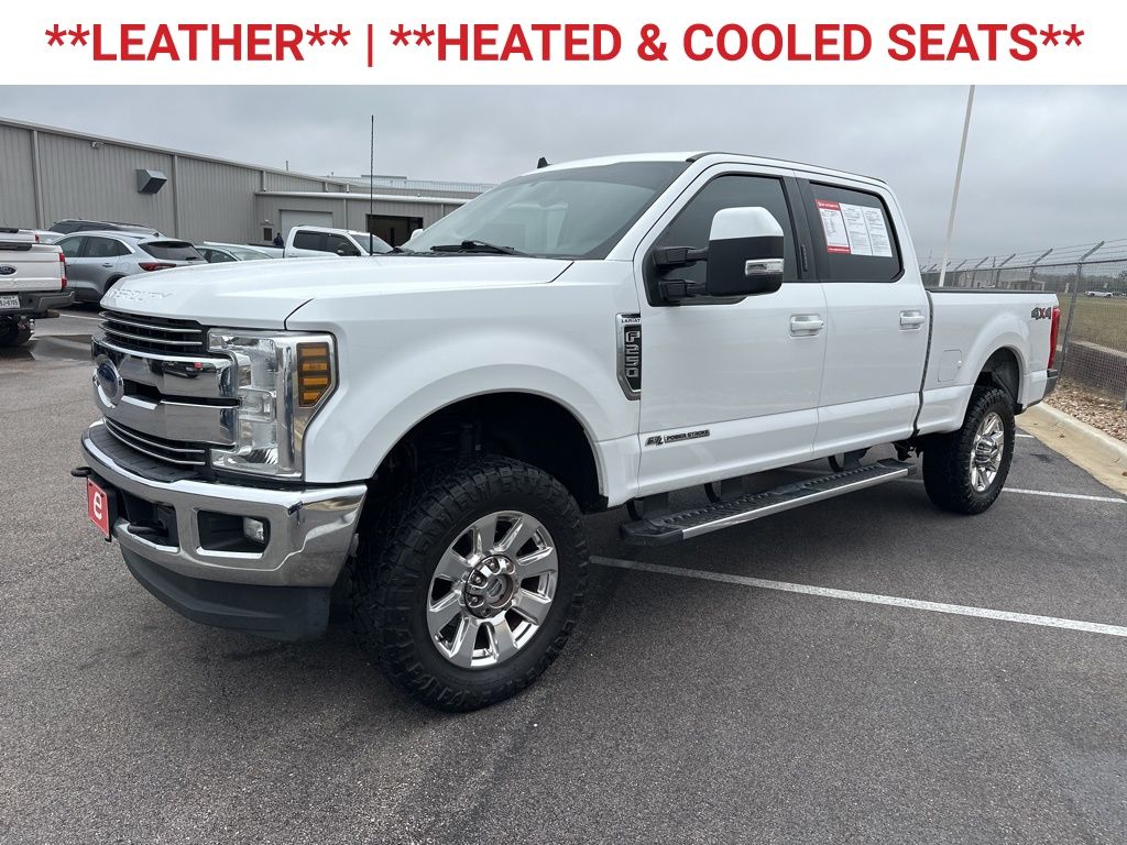 Odometer is 1694 miles below market average! Navigation, remote start, leather, heated and cooled seats, backup camera, Bluetooth hands-free calling, Apple CarPlay and Android Auto, towing package, turbo diesel power, 4x4, blind spot sensors, lane-keeping assist. Oxford White 2019 Ford F-250SD Lariat 4WD TorqShift 6-Speed Automatic Power Stroke 6.7L V8 DI 32V OHV Turbodiesel. This vehicle is located at EAG Ford Navasota but can be made available upon request. The price does not include Tax, Title, License, or Documentation Fee of $225.