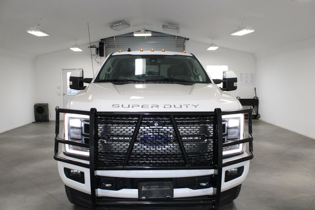 4X4 Four Wheel Drive, custom front brush guard, Power Stroke 6.7L Turbo-Diesel engine, Bluetooth, Sirius XM Satellite Radio, Apple CarPlay, Google Android Auto, steering wheel audio controls, touch screen controls, backup camera, Homelink Universal Garage Door Opener, Wi-Fi hotspot, keyless push button start, automatic headlights, power driver seat, power passenger seat, heated/cooled leather seats, heated rear leather seats, panoramic sunroof/moonroof, memory package / memory seat, heated steering wheel, spray-in bedliner, tow package / trailer package, integrated trailer brake controller, power deployable running boards, WeatherTech all weather floor mats, Bang & Olufsen high end sound package, limited series, preferred equipment package 718A, 20" polished aluminum wheels, 10 speakers, 3.55 axle ratio, air conditioning, automatic temperature control, compass, delay-off headlights, driver vanity mirror, dual front impact airbags, dual front side impact airbags, emergency communication system: SYNC 3 911 Assist, exterior parking camera rear, front dual zone A/C, front fog lights, fully automatic headlights, panic alarm, security system, speed control, bumpers: body-color, heated door mirrors, power door mirrors, rear step bumper, turn signal indicator mirrors.