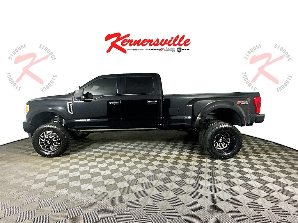 This 2019 Ford Super Duty F 350 DRW Platinum Crew Cab 4X4 is a premium heavy duty truck engineered for serious towing, hauling, and long distance comfort. Powered by the proven 6.7L Power Stroke V8 diesel engine paired with a 6 speed automatic transmission and four wheel drive, it delivers exceptional torque and durability for demanding work. Performance and control are enhanced with the FX4 off road package, hill descent control, premium off road shocks, skid plates, and a limited slip axle for added traction. Advanced trailering features include the ultimate trailer tow camera system, adaptive cruise control with collision warning, snowplow prep package, and upfitter switches to support custom equipment. The Platinum interior offers upscale comfort with unique leather captain chairs, a SYNC 3 touchscreen system, B and O premium audio, power moonroof, dual zone climate control, and a driver information center. Exterior highlights include manual extendable trailer mirrors, cab clearance lights, aluminum body panels, wheel well liners, and a rugged long box design, making this F 350 Platinum a powerful and well equipped solution for heavy duty needs.