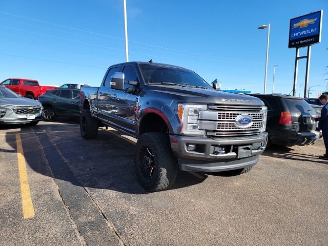 Come see this beautiful 2019 Ford F-350SD Platinum at Mike Maroone Chevrolet South, 230 N Academy Blvd, Colorado Springs, CO. 3 day 150 mile money back guarantee, free delivery anywhere in Colorado, 60 day powertrain warranty, clean Carfax - no accidents reported, 3 free months XM Radio (if equipped), 4 wheel drive, 8 color touchscreen, Apple CarPlay, Android Auto, air conditioning, alloy wheels, Bluetooth - hands free, fresh oil & filter change, front & rear brakes, front and rear park assist, heated 2nd row seats, heated and ventilated seats, heated seats, heated steering wheel, lane change alert with side blind zone alert, lane keep assist, leather seats, memory seats, navigation system, panoramic sunroof, passive entry system, keyless open, keyless start, keyless entry, power heated outside mirrors, cruise control, power windows, power locks, power seat, rain sensing windshield wipers, rear back up camera, rear cross traffic alert, remote vehicle start, running boards, service records available, steering wheel audio controls, tow package, trailering equipment, wireless charging, bedliner.