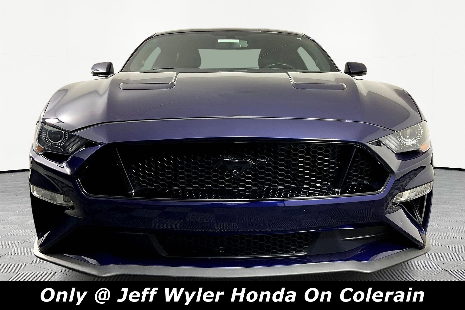 Jeff Wyler Honda of Colerain is honored to offer this good-looking 2019 Ford Mustang GT Premium in Kona Blue. Well equipped with: Black Accent Package (Black GT, 5.0 & Pony Badges, Black Rear Spoiler, Painted Black Roof, and Wheels: 19" x 8.5" Ebony Black-Painted Aluminum), Equipment Group 401A (Blind Spot Info System w/Cross-Traffic Alert, Leather Bucket Seats w/Color Accents, and Memory Driver Seat, Mirrors & Ambient Lighting), 4-Wheel Disc Brakes, 9 Speakers, ABS brakes, Active Valve Performance Exhaust, Air Conditioning, Alloy wheels, AM/FM radio: SiriusXM, AM/FM Stereo, AppLink/Apple CarPlay and Android Auto, Auto-dimming Rear-View mirror, Automatic temperature control, Brake assist, Bumpers: body-color, Climate Controlled Heated/Cooled Front Seats, Compass, Delay-off headlights, Driver door bin, Driver vanity mirror, Dual front impact airbags, Dual front side impact airbags, Electronic Stability Control, Emergency communication system: 911 Assist, Exterior Parking Camera Rear, Four wheel independent suspension, Front anti-roll bar, Front Bucket Seats, Front Center Armrest, Front dual zone A/C, Front fog lights, Front reading lights, Fully automatic headlights, Garage door transmitter, HD Radio, Heated door mirrors, Heated front seats, Illuminated entry, Knee airbag, Leather Bucket Seats, Leather Shift Knob, Low tire pressure warning, Occupant sensing airbag, Outside temperature display, Overhead airbag, Overhead console, Panic alarm, Passenger door bin, Passenger vanity mirror, Power door mirrors, Power driver seat, Power passenger seat, Power steering, Power windows, Premium Floor Liners Front & Rear, Radio data system, Radio: B&O Sound System by Bang & Olufsen, Rear anti-roll bar, Rear window defroster, Remote keyless entry, Security system, SiriusXM Radio, Speed control, Speed-sensing steering, Speed-Sensitive Wipers, Split folding rear seat, Spoiler, Steering wheel mounted audio controls, SYNC 3 Communications & Entertainment System, Tachometer, Telescoping steering wheel, Tilt steering wheel.