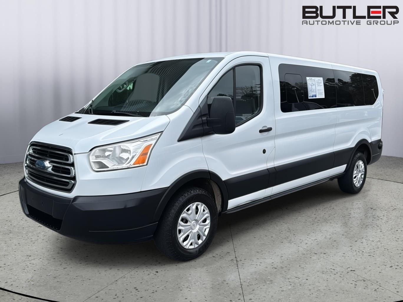 Thank you for choosing Butler Ford, this Oxford White 2019 Ford Transit Passenger Wagon XLT is a great choice! Check out the following: One Owner! City 0/ Hwy 0. Order Code 302A. Exterior Upgrade Package. Pewter Cloth Dual Bucket Seats. 6-Speed Automatic Transmission with Overdrive and SelectShift. AM/FM single-CD Stereo. Cruise Control with Message Center. 16 Steel Wheels with Full Silver Cover. Vinyl Sun Visors. 3.7L Ti-VCT V6 Engine. Cloth Front Bucket Seats. 9,000 lbs GVWR. 235/65R16C AS BSW Tires. 3.73 Axle Ratio. ENGINE: 3.7L TI-VCT V6 W/98F, OXFORD WHITE. Comfort. Fixed third-row seats. Convenience. Cruise control with steering wheel mounted controls. Set it and forget it. Road trips used to be stressful, until cruise control set the pace. Simply set the desired speed using the steering wheel mounted controls and it will maintain that speed without driver intervention. This can help minimize driver fatigue and improve overall fuel economy. Resting your right foot is right at your fingertips thanks to cruise control with steering wheel mounted controls. Powertrain and Mechanical. Variable valve timing - Change your output. There are a lot of variables in your drive, so why should your engine always operate the same? With variable valve timing, the engine is efficient at both low and high RPM's, so you get better fuel efficiency, cleaner emissions and improved performance. Variable valve timing provides a better drive, every time. Safety and Security. Rear camera - Watching your back! The rear camera helps you see obstacles and hazards you otherwise couldn't by showing enhanced images of what is behind you. The rear camera is an extra set of eyes that's both convenient and safe. Brake assist - Stop right there. Something jumps out into the middle of the road and you need to stop now! With brake assist, you will. It uses the speed of the brake pedal's travel to sense panic braking, then applies all available power to boost your stopping power. Brake assist can stop the accident before it is one.