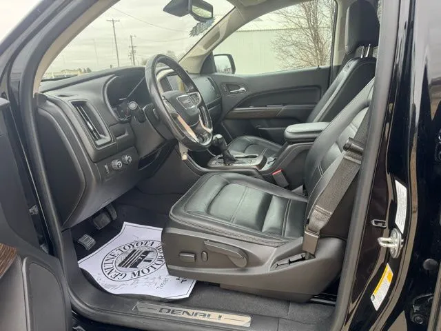 This 2019 GMC Canyon Denali offers a compelling mix of rugged capability and modern comfort, making it an ideal choice for drivers seeking versatility and luxury in a used pickup. With just under 64,000 miles, this Onyx Black beauty features a powerful 3.6-liter V6 engine delivering 308 horsepower, paired with an 8-speed automatic transmission and 4WD for confident handling in all conditions. Inside, the Jet Black interior exudes sophistication, complemented by premium features such as heated seats, a navigation system, and a premium audio setup. Stay connected with Apple CarPlay, Bluetooth, and a Wi-Fi hotspot, while the touchscreen display provides intuitive control over entertainment and navigation. Safety is prioritized with collision warning, a backup camera, and fog lights, ensuring peace of mind on every journey. This GMC Canyon Denali is packed with advanced technology and safety features designed to enhance your driving experience. The vehicle offers satellite radio readiness, wireless phone charging, and a robust infotainment system with an 8-inch touchscreen, HD radio, and seven speakers for immersive sound. MyGMC connected access allows seamless smartphone integration, while voice-activated radio and hands-free calling improve convenience. The truck’s safety features include rear parking sensors, ABS with four-wheel anti-lock brakes, power door locks with auto-locking and anti-lockout functions, and a programmable safety key for added security. These elements combine to make every drive safer and more enjoyable. Performance is at the core of this GMC Canyon Denali, equipped with an electronic hi-lo 4WD selector for versatile traction management. Its part-time 4WD system with an on-demand setting allows drivers to switch between 2WD and 4WD modes as needed, optimizing efficiency and capability. Additionally, a rear locking differential provides extra traction when tackling tough terrain or challenging conditions, ensuring this truck can handle your toughest jobs with confidence.