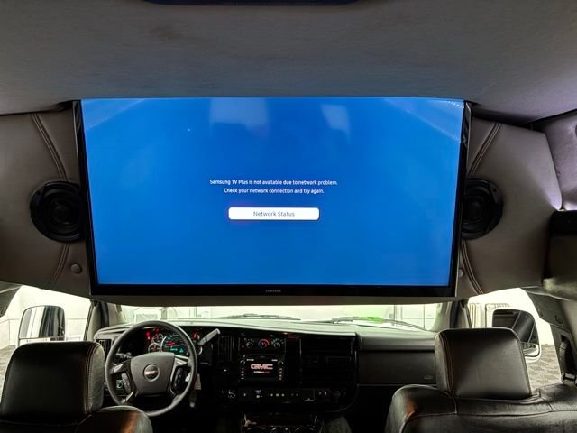 Pre Owned 2019 GMC Savana Conversion by Explorer Van Company! Exterior: White Paint, Powered Running Boards, Vista Bay Hi-Top Roof, Mesh Chrome Grille. Interior: Black Leather, Wood Accents, 6 Captains Chairs, Air Conditioner/Rear Air. Engine: Vortec 6.0L V8 SFI Flex Fuel. Body: GMC Savana 2500 Extended with Seating for 8 Passengers, Keyless/Power Locks. Doors: Cab Doors (1 per side), Mid Door (Passenger side), Rear Doors (2). Front Seating: Captains Chairs, Heated Seats, Power Seating, Premium Leather Seats. Mid Seating: Captains Chairs, Premium Leather Seats. Rear Seating: Rear Power-Sliding Sofa/Bed.
