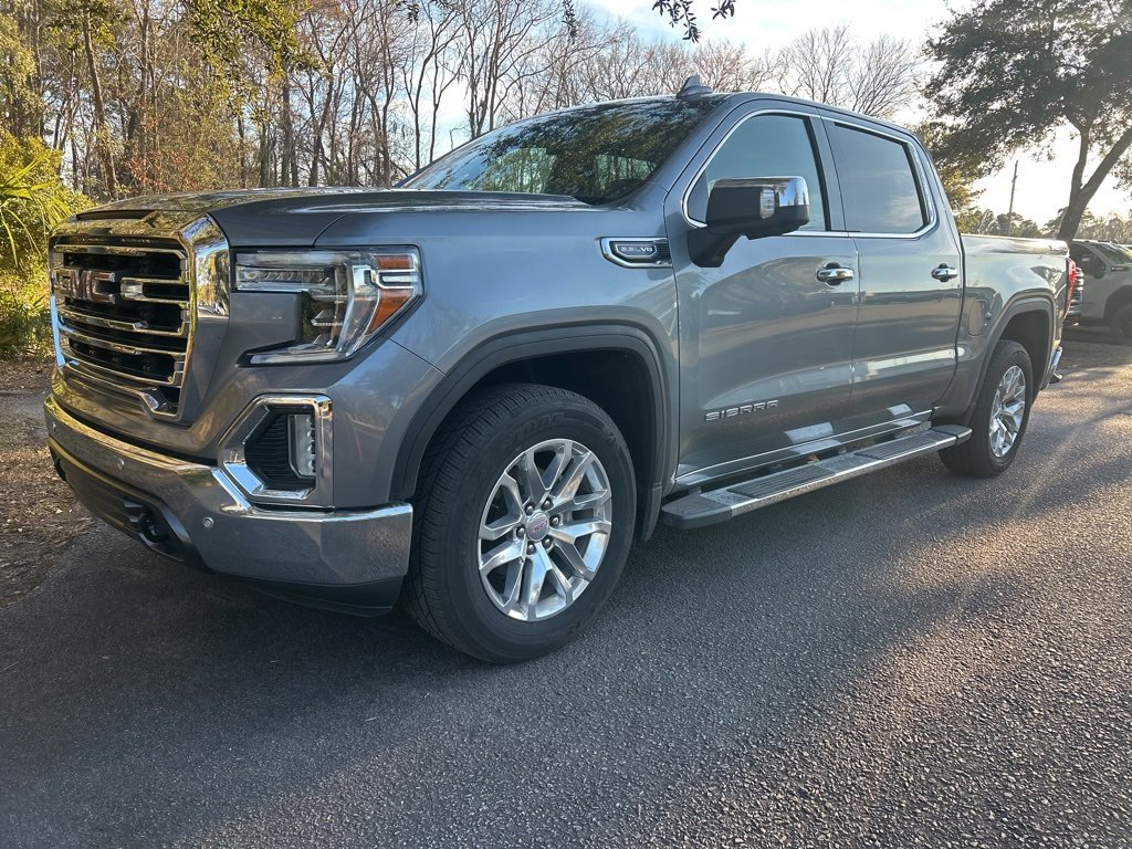 2019 Sierra 1500 SLT Local trade in, Bluetooth, Apple CarPlay, backup camera, clean Carfax history, one owner, leather seats, 4x4 four wheel drive AWD all wheel drive, tow package trailer package, 4D Crew Cab, EcoTec3 5.3L V8, 8-Speed Automatic, 4WD, Satin Steel Metallic, Dark Walnut/Slate leather. CARFAX One-Owner. 4WD clean Carfax. EcoTec3 5.3L V8 8-Speed Automatic. Odometer is 44362 miles below market average! You'll do better at Hilton Head Buick-GMC-Cadillac.