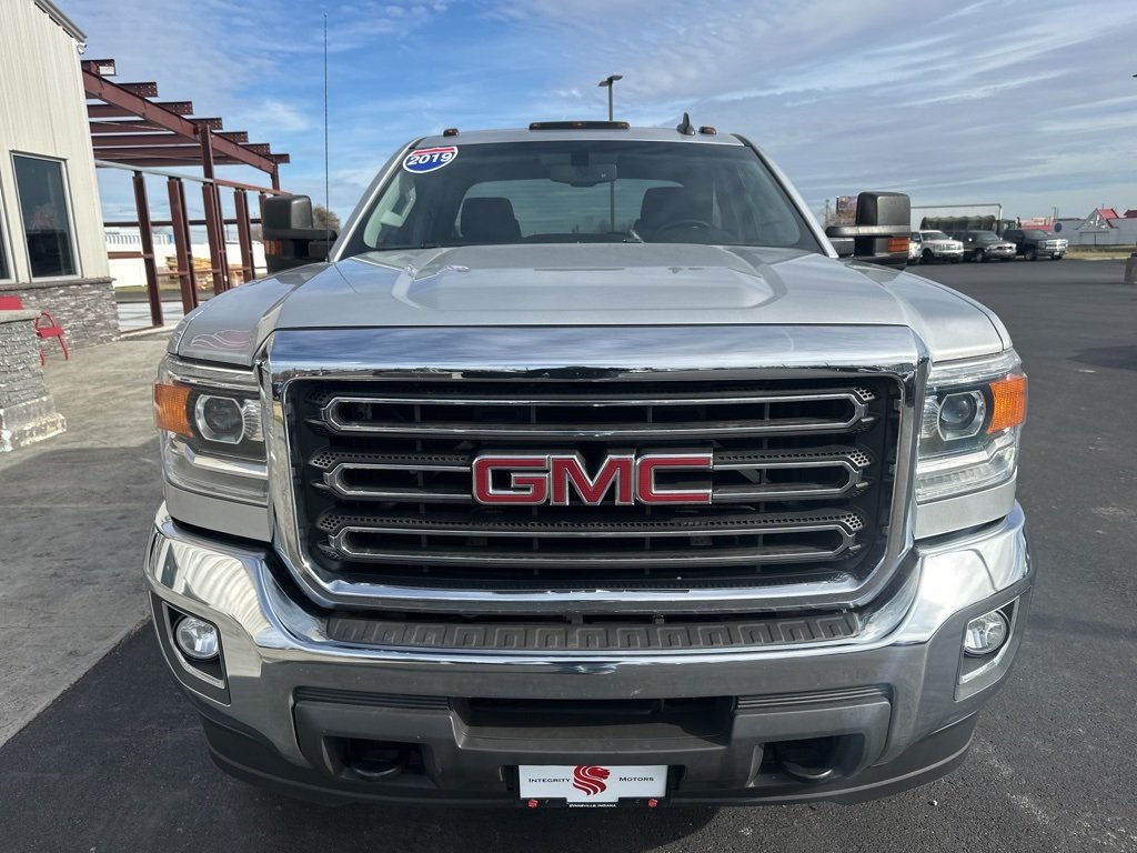 Clean Carfax. Quicksilver Metallic 2019 GMC Sierra 2500HD SLE 4WD 6-Speed Automatic HD Electronic with Overdrive Vortec 6.0L V8 SFI Flex Fuel VVT 6-Speed Automatic HD Electronic with Overdrive, 4WD, Black Cloth. All of our vehicles are Carfax certified and carefully inspected to provide you with a carefree car buying experience. When you buy with Integrity Motors you can feel good about your purchase knowing that each vehicle was hand picked and inspected like it was our own. Join the Pride and buy with Integrity! Vehicles featuring custom wheels or accessories may not have the cost included in the price, see dealer for details. Images, prices, and options shown, including vehicle color, trim, options, pricing and other specifications are subject to availability. Vehicle information deemed reliable but not guaranteed accurate. See dealer for any questions.