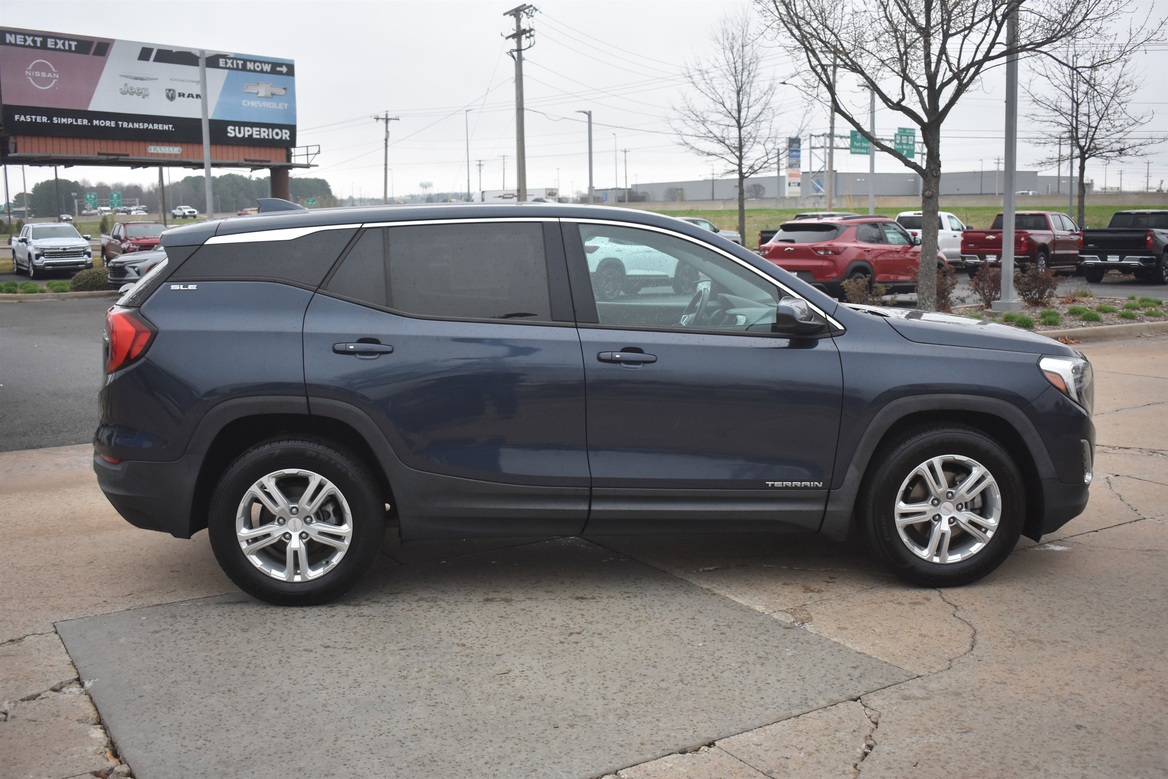 Make a statement on the road with this stunning Blue Steel Metallic 2019 GMC Terrain SLE. This modern SUV strikes the perfect balance between sophisticated style and everyday utility. Powered by an efficient 1.5L DOHC engine paired with a smooth 9-speed automatic transmission, it delivers a comfortable ride that is easy on the wallet, offering up to 30 MPG on the highway. Whether you are commuting to work or running errands around town, this Terrain is built to handle it all with ease. Inside, you will find a cabin loaded with the technology you need to stay connected. The GMC Infotainment System features a 7-inch display that includes Apple CarPlay and Android Auto, allowing you to seamlessly sync your smartphone for navigation, music, and messages. With two USB data ports and an auxiliary input jack, keeping your devices charged and ready to go is simpler than ever. The heated door mirrors are a lifesaver on frosty mornings. The vehicle comes equipped with High-Intensity Discharge Headlights and fully automatic headlights that brighten the path ahead with impressive clarity. The vehicle features are designed to be more relaxing at night or in tricky weather.