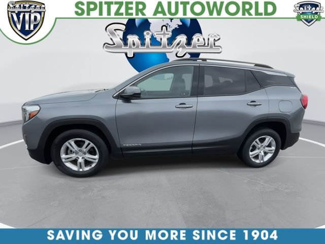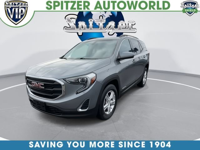 2019 GMC Terrain SLE AWD. This 2019 GMC Terrain SLE in Satin Steel Metallic is nicely equipped with the following features Driver Alert Package I (Lane Change Alert w/Side Blind Zone Alert, Outside Heated Power-Adjustable Mirrors, Rear Cross-Traffic Alert, Rear Park Assist, and Safety Alert Seat), Driver Convenience Package (8-Way Power Driver Seat Adjuster, Driver & Front Passenger Heated Seats, Dual-Zone Automatic Climate Control, Power Driver Lumbar Control, Remote Start, and Roof-Mounted Luggage Rack Black Side Rails), License Plate Front Mounting Package, Preferred Equipment Group 3SA, AWD, 2 USB Data Ports w/Auxiliary Input Jack, 3.47 Axle Ratio, 4-Way Manual Driver's Seat, 4-Way Manual Front Passenger Seat, 4-Wheel Disc Brakes, 6 Speakers, 6-Speaker Audio System Feature, ABS brakes, Air Conditioning, Alloy wheels, AM/FM radio, Apple CarPlay/Android Auto, Auto-dimming Rear-View mirror, Bluetooth For Phone, Brake assist, Bumpers: body-color, Compass, Delay-off headlights, Driver door bin, Driver vanity mirror, Dual front impact airbags, Dual front side impact airbags, Electronic Stability Control, Emergency communication system, Exterior Parking Camera Rear, Four wheel independent suspension, Front anti-roll bar, Front Bucket Seats, Front Center Armrest, Front reading lights, Fully automatic headlights, Heated door mirrors, High-Intensity Discharge Headlights, Illuminated entry, Low tire pressure warning, Occupant sensing airbag, Outside temperature display, Overhead airbag, Overhead console, Panic alarm, Passenger door bin, Passenger vanity mirror, Power door mirrors, Power Programmable Rear Liftgate, Power steering, Power windows, Premium Cloth Seat Trim, Radio data system, Radio: GMC Infotainment Audio System w/7 Display, Rear anti-roll bar, Rear seat center armrest, Rear window defroster, Rear window wiper, Remote keyless entry, Security system, Speed control, Speed-sensing steering, Split folding rear seat, Spoiler, Steering wheel mounted audio controls, Tachometer, Telescoping steering wheel, Tilt steering wheel, Traction control, Trip computer, Variably intermittent wipers, Wheel Locks, and Wheels: 17 x 7 Silver Painted Aluminum.