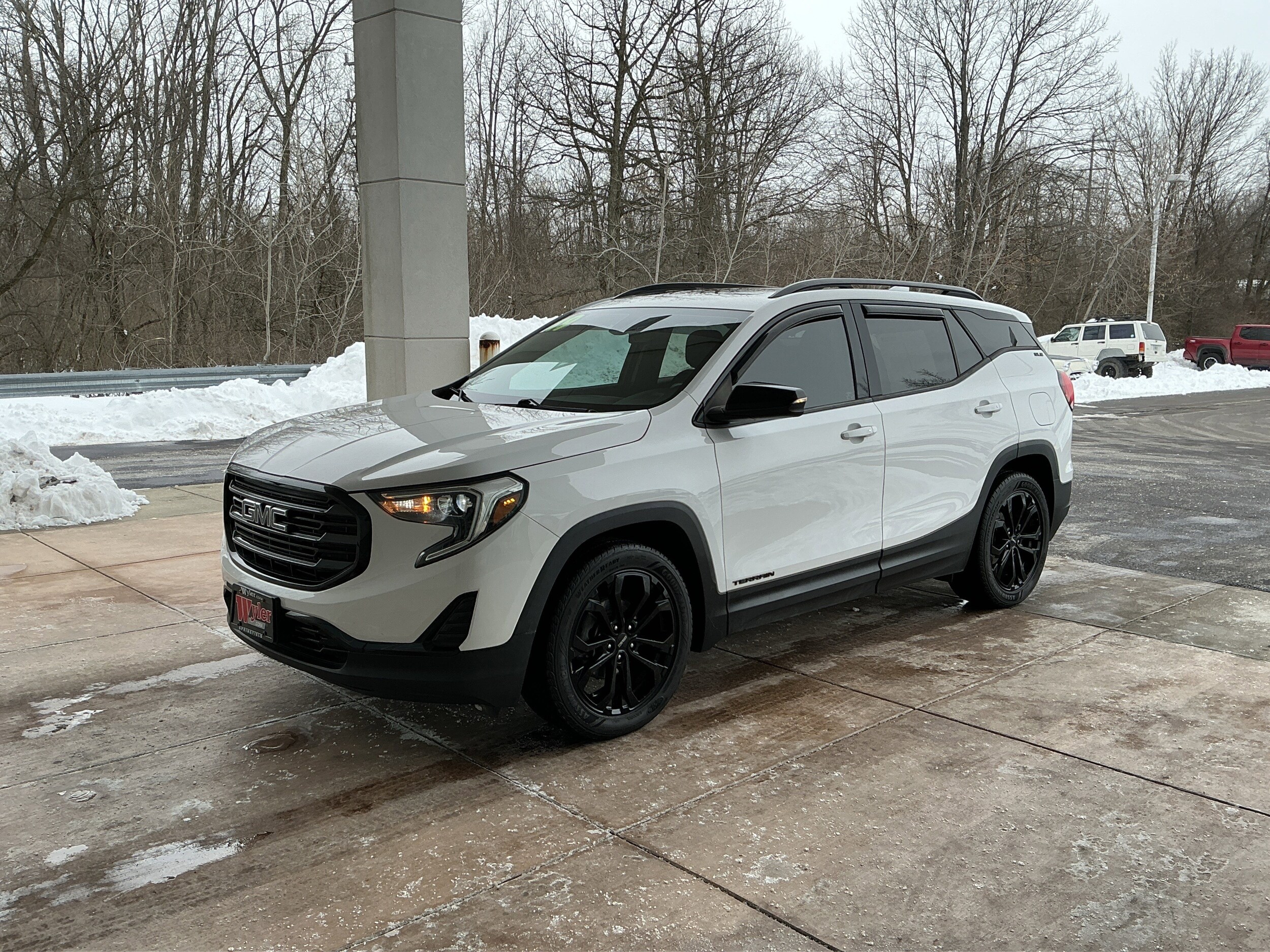 Jeff Wyler Springfield Auto Mall is excited to offer this handsome 2019 GMC Terrain SLE in Summit White. Well equipped with: Black Edition (Black GMC Center Caps w/Black GMC Lettering, Black Mirror Caps, Darkened Front Grille, Roof-Mounted Luggage Rack Black Side Rails, and Wheels: 19" x 7.5" Gloss Black Painted Aluminum), Driver Alert Package I (Lane Change Alert w/Side Blind Zone Alert, Outside Heated Power-Adjustable Mirrors, Rear Cross-Traffic Alert, Rear Park Assist, and Safety Alert Seat), Driver Convenience Package (8-Way Power Driver Seat Adjuster, Driver & Front Passenger Heated Seats, Dual-Zone Automatic Climate Control, Power Driver Lumbar Control, and Remote Start), License Plate Front Mounting Package, Preferred Equipment Group 3SA. Awards: * JD Power Automotive Performance, Execution and Layout (APEAL) Study Ask about available certifications. Used vehicles 10 years of age or newer with less than 100,000 miles are eligible for the Wyler Assurance Program, but eligible vehicles must pass our reconditioning process and multi-point inspection. Provided the vehicle passes inspection, vehicles will be eligible for the 6 month/6,000 mile limited warranty. The 6 month/6,000 mile limited warranty is NOT available on AS-IS vehicles, wholesale vehicles, lease buyback/pass-thru vehicles or un-inspected vehicles. Note that this program can also apply to vehicles where the remaining factory coverage is less than 6 months or 6,000 miles. Please check the Federal Trade Commission (FTC) Buyers guide on the vehicle for full details as to whether or not warranty coverage may apply. Contact Dealer for additional details. The Wyler Assurance 6 month/6,000 Mile limited warranty ends 6 months from the date of the Retail Purchase Agreement (BUYERS ORDER) or when the vehicle's odometer registers 6,000 additional miles to the mileage listed on the BUYERS ORDER, whichever comes first. Your Deductible - The warranty holder on your contract pays the first $100 of each covered repair.