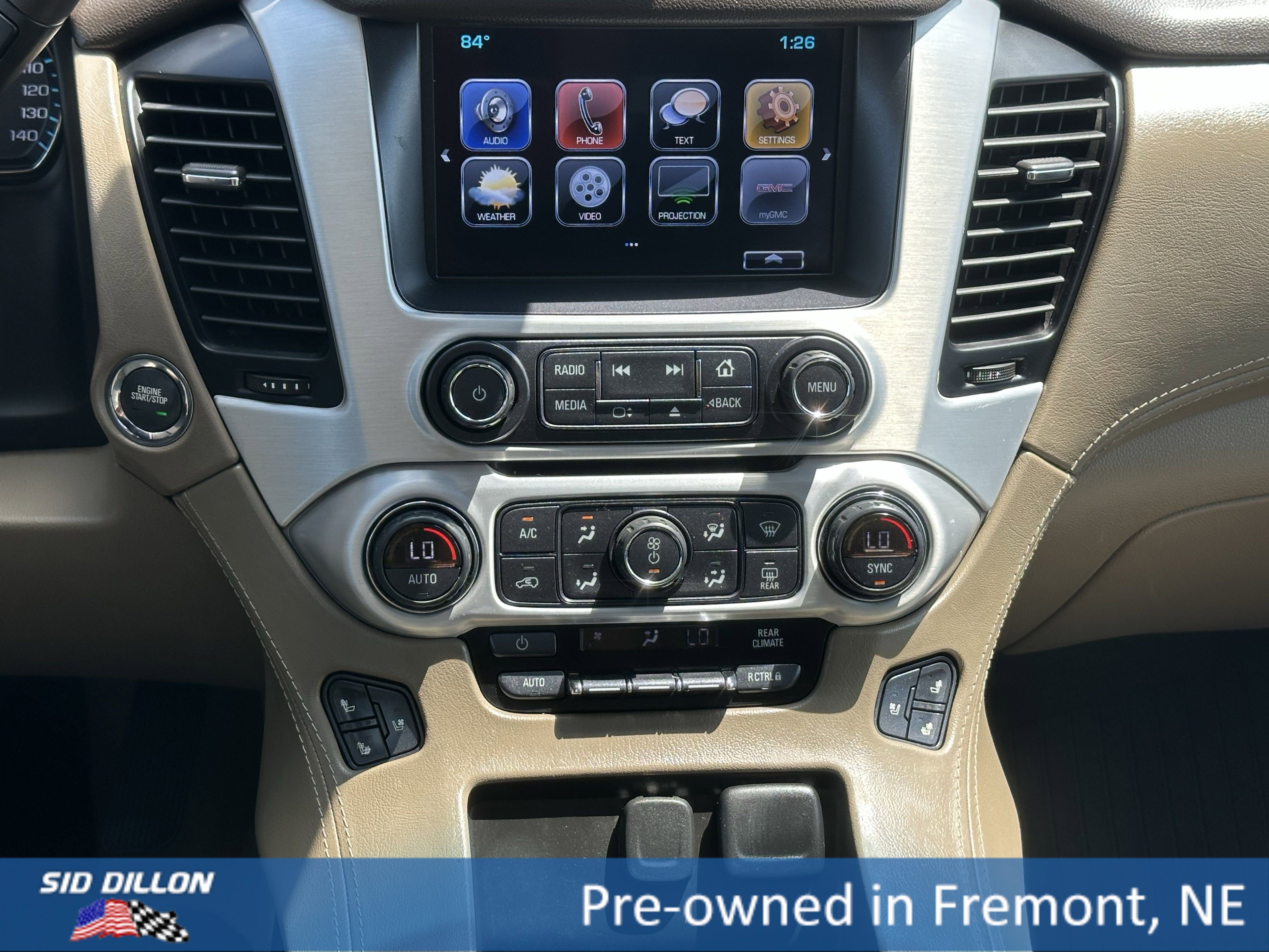 Sturdy and dependable, this 2019 GMC Yukon SLT lets you cart everyone and everything you need. Tire Pressure Monitoring System with Tire Fill Alert (does not apply to spare tire), Teen Driver a configurable feature that lets you activate customizable vehicle settings associated with a key fob, to encourage safe driving behavior. It can limit certain vehicle features, and it prevents certain safety systems from being turned off. An in-vehicle report card gives you information on driving habits and helps you to continue to coach your new driver, StabiliTrak, stability control system with brake assist, includes traction control., Rear Vision Camera, Rear Cross Traffic Alert. OnStar Equipped (subscription required), Low Speed Forward Automatic Braking, LATCH system (Lower Anchors and Top tethers for Children), for child safety seats lower anchors and top tethers located in all second row seating positions, top tethers located in third row seating positions, Lane Keep Assist with Lane Departure Warning, Lane Change Alert with Side Blind Zone Alert, IntelliBeam, automatic high beam on/off, Front outboard Passenger Sensing System for frontal outboard passenger airbag (Always use seat belts and child restraints. See the Owner's Manual for more information.), Front and Rear Park Assist, Forward Collision Alert, Daytime Running Lamps, with automatic exterior lamp control, Brakes, Hill Start-Assist, Brakes, 4-wheel antilock, 4-wheel disc, Airbags, Frontal airbags for driver and front outboard passenger; Seat-mounted side-impact airbags for driver and front outboard passenger; Driver inboard seat-mounted side-impact airbag; Head-curtain airbags for all rows in outboard seating positions (Always use seat belts and child restraints. See the Owner's Manual for more information). Stop by today for a must-own GMC Yukon at Sid Dillon Fremont Chevrolet, 2500 E 23rd St, Fremont, NE 68025. Just minutes away!