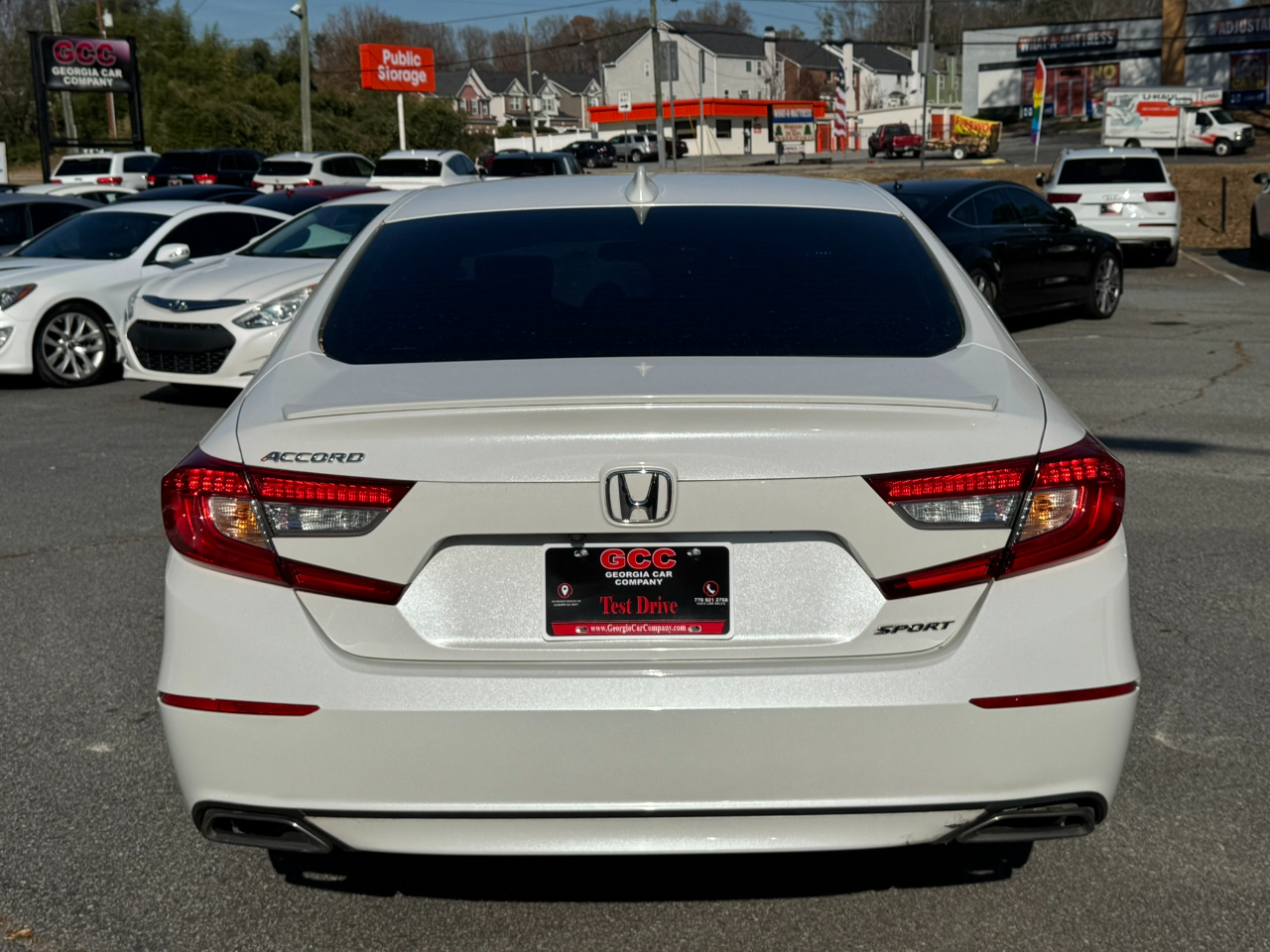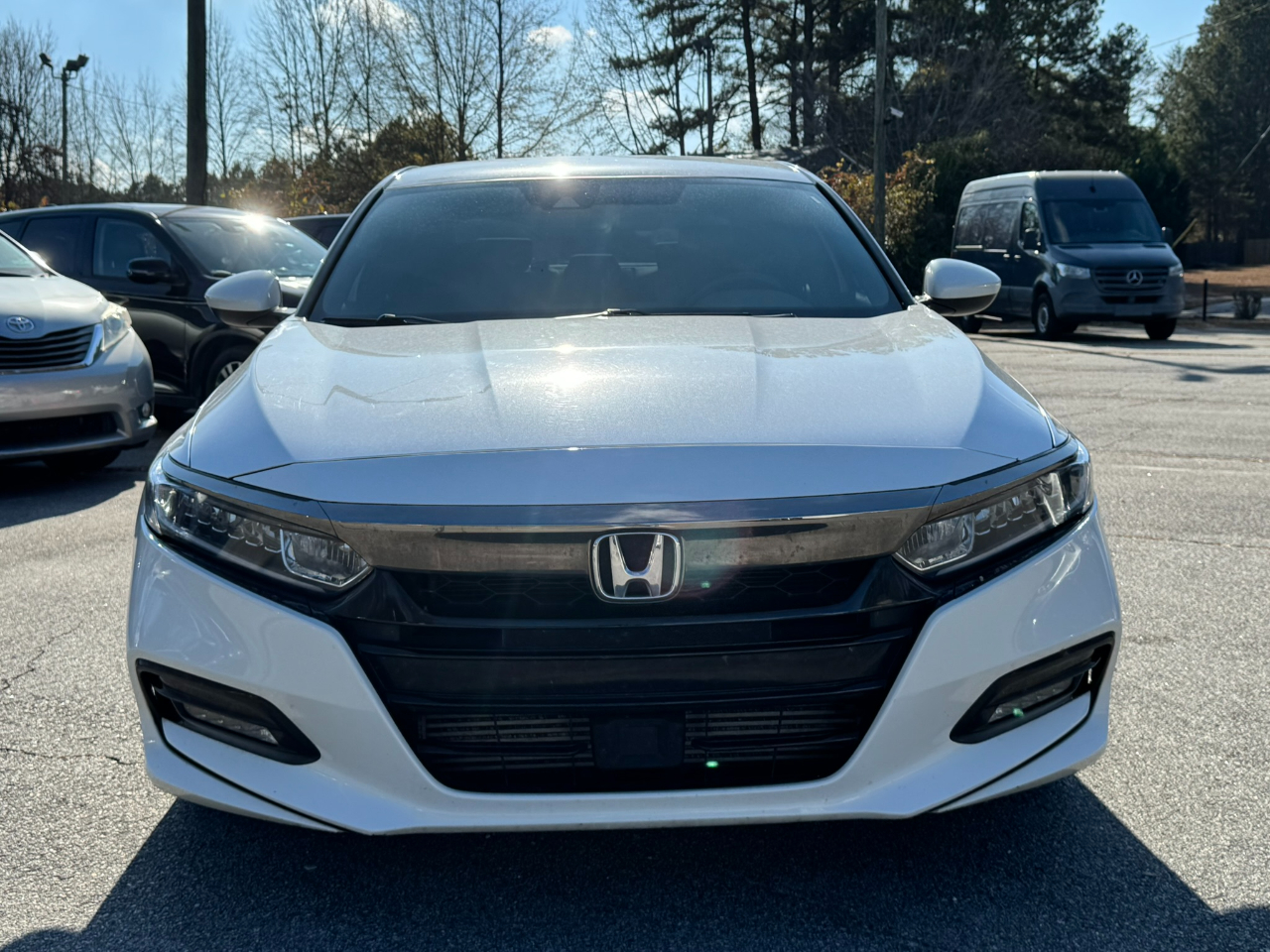 2019 Honda Accord Sport FWD, Platinum White Pearl on Black, automatic transmission, back-up camera, Bluetooth technology, blind spot monitor, AM / FM stereo, Apple CarPlay, Android Auto, automated cruise control, alloy wheel, cloth seats, dual zone climate control, dual zone climate control, keyless entry, lane departure warning, power door locks, power windows, power exterior heated mirrors, power steering, rear spoiler, smart key, stability control, tire pressure monitor, traction control, turbo charged engine, cruise, tilt, ABS, cold AC, heat, loaded, please contact Georgia Car Company for more information at 770-921-2760.