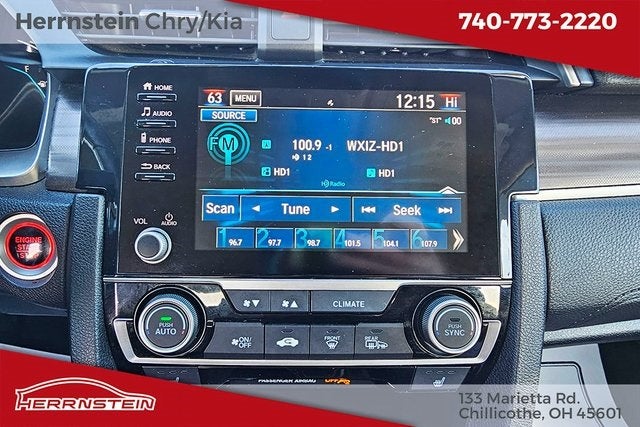 Odometer is 20209 miles below market average! Recent Arrival! Driven by Family. Powered by Community. For over 80 years, Herrnstein Auto Group has proudly served Chillicothe and Southern Ohio with trusted service and hometown values. What began as a small family dealership in 1940 is now one of the region’s most respected automotive groups — still delivering the personal touch that sets us apart. Whether you're buying your first car or upgrading your current ride, our team makes the process smooth, transparent, and tailored to you. We're more than a dealership — we're your neighbors, committed to giving back and treating every customer like family. Come see why generations of drivers trust Herrnstein — where you're always treated like family. Herrnstein Auto Group is proud to offer this 2019 Honda Civic EX-L in Silver with Leather. This Civic is very well equipped with Leather, 17 Alloy Wheels, 4-Wheel Disc Brakes, 8 Speakers, ABS brakes, Air Conditioning, Alloy wheels, AM/FM radio: SiriusXM, Apple CarPlay/Android Auto, Auto High-beam Headlights, Auto-dimming Rear-View mirror, Automatic temperature control, Brake assist, Bumpers: body-color, Delay-off headlights, Driver door bin, Driver vanity mirror, Dual front impact airbags, Dual front side impact airbags, Electronic Stability Control, Emergency communication system: HondaLink, Exterior Parking Camera Rear, Forward collision: Collision Mitigation Braking System (CMBS) + FCW mitigation, Four wheel independent suspension, Front anti-roll bar, Front Bucket Seats, Front Center Armrest, Front dual zone A/C, Front fog lights, Front reading lights, Fully automatic headlights, Garage door transmitter: HomeLink, Heated door mirrors, Heated Front Bucket Seats, Heated front seats, Illuminated entry, Lane departure: Lane Keeping Assist System (LKAS) active, Leather Seat Trim, Leather Shift Knob, Low tire pressure warning, Occupant sensing airbag, Outside temperature display, Overhead airbag, Overhead console, Panic alarm, Passenger door bin, Passenger vanity mirror, Power door mirrors, Power driver seat, Power moonroof, Power steering, Power windows, Radio data system, Radio: 180-Watt AM/FM/HD/SiriusXM Audio System, Rear anti-roll bar, Rear seat center armrest, Rear window defroster, Remote keyless entry, Security system, Speed control, Speed-sensing steering, Speed-Sensitive Wipers, Split folding rear seat, Spoiler, Steering wheel mounted audio controls, Tachometer, Telescoping steering wheel, Tilt steering wheel, Traction control, Trip computer, and Variably intermittent wipers. 32/42 City/Highway MPG Call Herrnstein Chrysler Dodge Jeep Ram Kia @ 740-773-2220 today to schedule your test drive and experience the Herrnstein family difference.