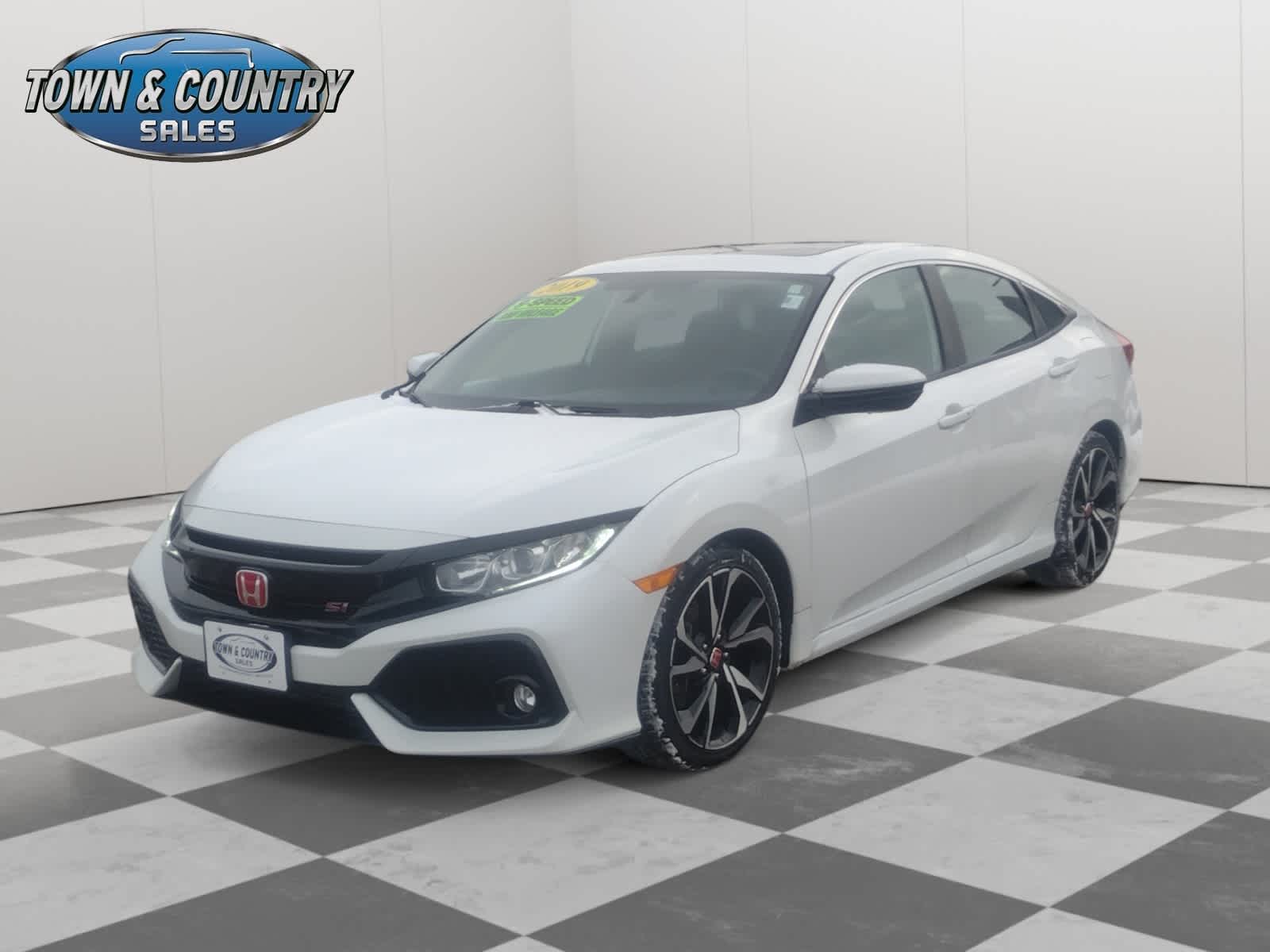 Platinum White Pearl exterior and Black interior, Civic Si Sedan trim. EPA 38 MPG Hwy/28 MPG City! Moonroof, Heated Seats, Premium Sound System, Aluminum Wheels, Turbo Charged Engine, Back-Up Camera. The team at Town & Country Ford of Quinnesec would like to welcome you to our dealership in Quinnesec, where were confident youll find the vehicles youre looking for at a price you can afford.