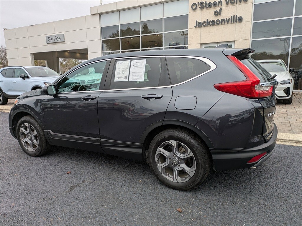 Recent Arrival! Odometer is 32193 miles below market average! 2019 Honda CR-V EX-L AWD, 18" Alloy Wheels, 4-Wheel Disc Brakes, 5.64 Axle Ratio, 8 Speakers, ABS brakes, Air Conditioning, Alloy wheels, AM/FM radio: SiriusXM, Apple CarPlay/Android Auto, Auto High-beam Headlights, Auto-dimming Rear-View mirror, Automatic temperature control, Blind Spot Information (BSI) System warning, Brake assist, Bumpers: body-color, Compass, Delay-off headlights, Driver door bin, Driver vanity mirror, Dual front impact airbags, Dual front side impact airbags, Electronic Stability Control, Exterior Parking Camera Rear, Forward collision: Collision Mitigation Braking System (CMBS) + FCW mitigation, Four wheel independent suspension, Front anti-roll bar, Front Bucket Seats, Front Center Armrest, Front dual zone A/C, Front fog lights, Front reading lights, Fully automatic headlights, Garage door transmitter: HomeLink, Heated door mirrors, Heated Front Bucket Seats, Heated front seats, Illuminated entry, Lane departure: Lane Keeping Assist System (LKAS) active, Leather Seat Trim, Leather Shift Knob, Low tire pressure warning, Memory seat, Occupant sensing airbag, Outside temperature display, Overhead airbag, Overhead console, Panic alarm, Passenger door bin, Passenger vanity mirror, Power door mirrors, Power driver seat, Power Liftgate, Power moonroof, Power passenger seat, Power steering, Power windows, Radio data system, Radio: AM/FM/SiriusXM Audio System, Rear anti-roll bar, Rear seat center armrest, Rear window defroster, Rear window wiper, Remote keyless entry, Security system, Speed control, Speed-sensing steering, Speed-Sensitive Wipers, Split folding rear seat, Spoiler, Steering wheel mounted audio controls, Tachometer, Telescoping steering wheel, Tilt steering wheel, Traction control, Trip computer, Turn signal indicator mirrors, Variably intermittent wipers. NON SMOKE. Family Owned and Operated for almost 30 Years come expirience a Hastle Free Buying process with 5 star service Call us today 904-396-5486 O'Steen Volvo has been serving the local community for 30 years!