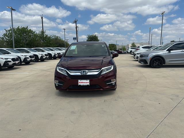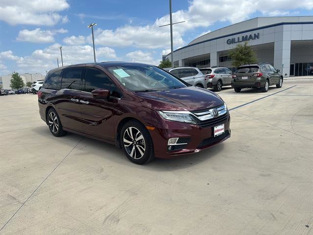 Gillman's Lifetime Engine Warranty lasts as long as you own your vehicle - free with the Gillman Pre-Owned Promise. If the vehicle isn't right for you, return it in purchase condition within 2 days or 200 miles as part of our Happy-Driving Guarantee. (Valid on vehicles under 90,000 miles and less than 7 years old). Experience premium family comfort in this dark red 2019 Honda Odyssey Elite. This top-tier minivan is powered by a robust 3.5L V6 engine with a smooth 10-speed automatic transmission and features front-wheel drive for confident handling. Inside, enjoy leather-trimmed upholstery, heated and ventilated front seats, a heated steering wheel, and a premium entertainment system with Blu-Ray/DVD player, rear video monitors, and wireless headphones-perfect for road trips. Stay connected with Apple CarPlay, Android Auto, and a Wi-Fi hotspot, all accessible via the 8-inch infotainment touchscreen. Advanced safety features include adaptive cruise control, lane keeping assist, blind spot monitoring, rear cross traffic alert, and a full suite of automatic emergency braking and pedestrian detection systems. Convenience abounds with power sliding doors, a hands-free power liftgate, built-in vacuum, panoramic moonroof, in-vehicle passenger camera, and tri-zone climate control. The Odyssey Elite is the ultimate family hauler, blending Honda reliability, modern tech, and luxurious comfort in one versatile package. All vehicles subject to prior sale. We are not responsible for typographical errors and may change information without notice. Photos may not depict the actual vehicle. Tax, title, and license fees not included. Dealer Discount available to all buyers.Vehicles purchased from Gillman Automotive Group include a Bring It Back Guarantee: return the vehicle in purchase condition within two days or 200 miles. New current-model-year vehicles and qualifying pre-owned vehicles (under 90,000 miles and less than 7 years old) are eligible. Guarantee is non-transferable and has no cash value. Lifetime Warranty available on select pre-owned vehicles. See dealer for details; restrictions may apply.