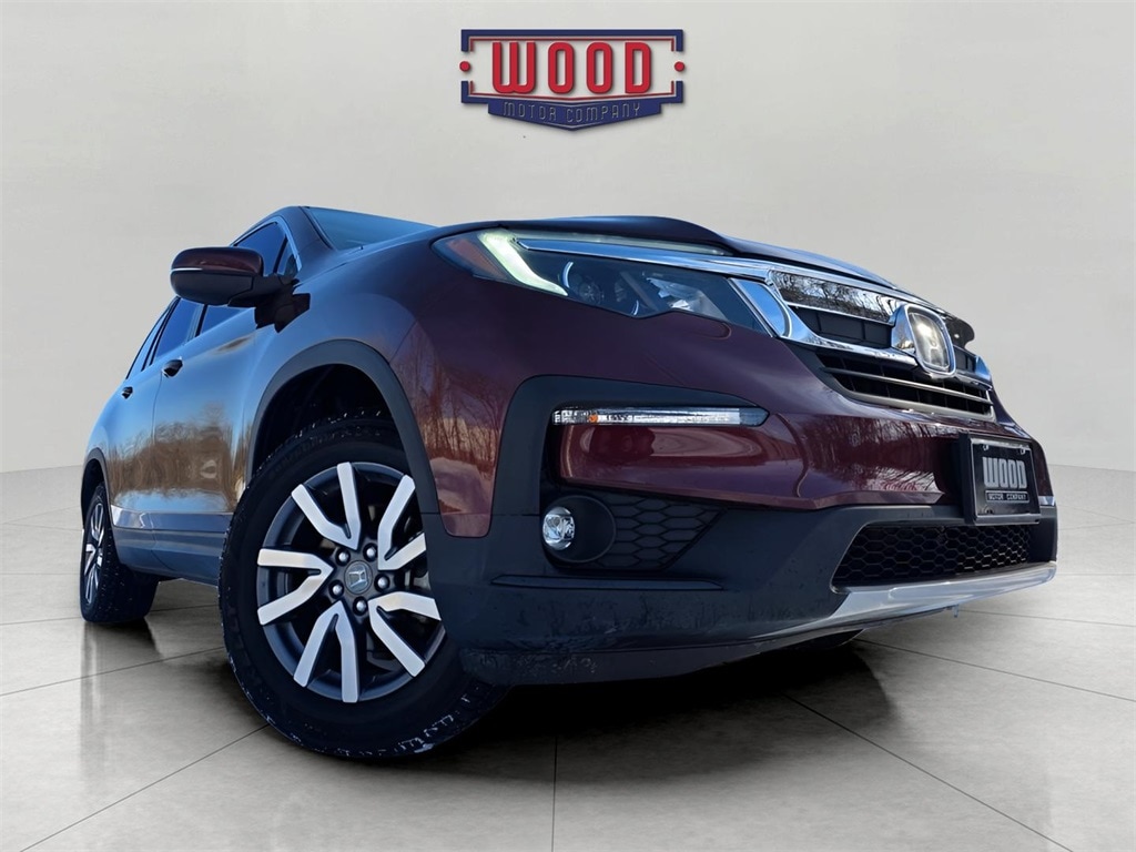 Pilot EX-L, 4D Sport Utility, 3.5L V6 24V SOHC i-VTEC, FWD, Beige w/Leather-Trimmed Seats, 18' Machine-Finished Alloy Wheels, 3rd row seats: split-bench, AM/FM radio: SiriusXM, Apple CarPlay/Android Auto, Automatic temperature control, Electronic Stability Control, Exterior Parking Camera Rear, Front Bucket Seats, Front dual zone A/C, Fully automatic headlights, Heated Front Bucket Seats, Heated front seats, Illuminated entry, Lane departure: Lane Keeping Assist System (LKAS) active, Leather-Trimmed Seats, Memory seat, Outside temperature display, Power driver seat, Power Liftgate, Power moonroof, Power passenger seat, Power windows, Radio: AM/FM Audio System, Rear air conditioning is used for only in the vehicle. The dealership will help determine accurate taxes prior to delivery. The dealership will help you with the correct information. The dealership will help you with the correct information. The dealership will help you with the correct information. Deep Scarlet Pearl 2019 Honda Pilot EX-L FWD 6-Speed Automatic 3.5L V6 24V SOHC i-VTEC A solid name you can trust... Wood Motor. Recent Arrival! Odometer is 5653 miles below market average! 19/27 City/Highway MPG Awards: * ALG Residual Value Awards, Residual Value Awards