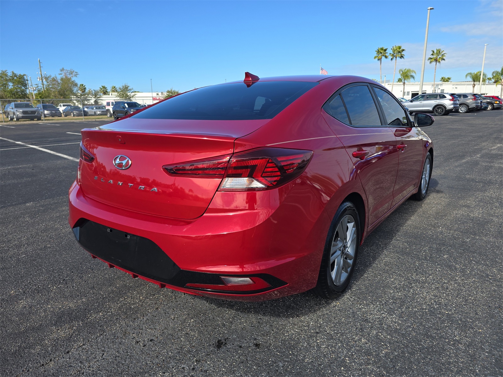 The 2019 Hyundai Elantra Value Edition in Scarlet Red is a stylish and practical compact sedan that brings together eye-catching design, everyday comfort, modern features, and efficient performance into one appealing package. The exterior is finished in Scarlet Red, a rich and vibrant shade of red that immediately grabs attention and gives the Elantra a lively and confident presence on the road. Whether parked under the sun or cruising home after work, the Scarlet Red paint highlights the car's clean body lines and sporty profile, making it both bold and refined. Stepping inside the 2019 Hyundai Elantra Value Edition reveals a comfortable and thoughtfully arranged cabin designed with both driver and passengers in mind. The interior provides seating for up to five people, with supportive cloth seats that balance comfort and durability ideal for everyday errands, long commutes, or longer road trips. The dashboard is designed for ease of use, with intuitive controls and a logical layout that helps keep your focus on the road. A touchscreen infotainment system sits at the center, offering access to audio and connectivity features that help make every drive more enjoyable. Bluetooth connectivity lets you make hands-free calls and stream music wirelessly, while USB inputs help keep your devices charged throughout your journey. The Elantra Value Edition also comes with thoughtful features that add to everyday comfort and usability. Automatic climate control helps maintain a pleasant temperature inside the cabin, while keyless entry makes getting in and out quick and convenient. Ample storage spaces help keep personal items organized and within easy reach. Under the hood, the 2019 Elantra Value Edition is powered by a fuel-efficient four-cylinder engine paired with a smooth automatic transmission. This powertrain delivers confident acceleration for city driving and relaxed cruising on the highway while also helping achieve strong fuel economy that saves you time and money at the pump. The Elantra's suspension is tuned for a comfortable and composed ride, helping absorb bumps and irregular pavement so passengers enjoy a smooth and pleasant experience no matter the route. Safety is also a priority in the Elantra's design. Standard safety features typically include multiple airbags, anti-lock brakes, stability control, traction control, and a rearview camera system that work together to help protect occupants and boost driver confidence. These features help make everyday driving and parking easier, providing added peace of mind behind the wheel. Cargo space in the Elantra Value Edition is both versatile and practical.