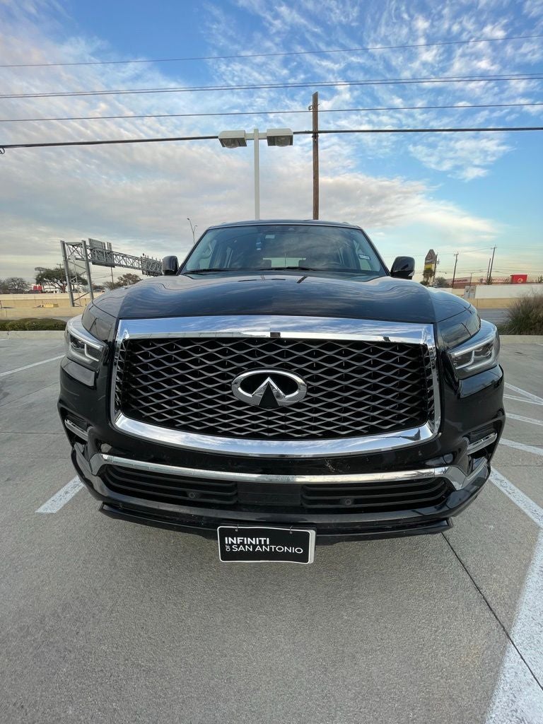 Grubbs INFINITI of San Antonio is pleased to present you with another Market Priced Pre-Owned Vehicle that has gone through our comprehensive 167 point safety inspection. This 2019 INFINITI QX80 LUXE is loaded with the following high value options All-Season Package (All-Season Floor Mats and Cargo Area Mat), Cargo Package (First-Aid Kit, High-Density Non-Slip Rear Cargo Carpet, and Nylon-Cord Cargo Net), ProASSIST Package (Backup Collision Intervention (BCI), Blind Spot Intervention (BSI), Blind Spot Warning, Intelligent Cruise Control (Full-Speed Range), and Lane Departure Warning System), 13 Speakers, 2.94 Axle Ratio, 3rd row seats: split-bench, 4-Wheel Disc Brakes, ABS brakes, Air Conditioning, Alloy wheels, AM/FM radio: SiriusXM, Anti-whiplash front head restraints, Auto High-beam Headlights, Auto tilt-away steering wheel, Auto-dimming door mirrors, Auto-dimming Rear-View mirror, Auto-leveling suspension, Automatic temperature control, Brake assist, Bumpers: body-color, CD player, Delay-off headlights, Driver door bin, Driver vanity mirror, Dual front impact airbags, Dual front side impact airbags, DVD-Audio, Electronic Stability Control, Emergency communication system: INFINITI Connection, Four wheel independent suspension, Front anti-roll bar, Front Bucket Seats, Front Center Armrest, Front dual zone A/C, Front fog lights, Front reading lights, Fully automatic headlights, Garage door transmitter: HomeLink, Genuine wood console insert, Genuine wood dashboard insert, Genuine wood door panel insert, Heated door mirrors, Heated Front Bucket Seats, Heated front seats, Heated steering wheel, Illuminated entry, INFINITI Radiant Welcome Lighting, Leather Shift Knob, Leather steering wheel, Leather-Appointed Seats w/Stratford Burl Trim, Literature Kit, Low tire pressure warning, Memory seat, Navigation system: INFINITI InTouch Navigation, Occupant sensing airbag, Outside temperature display, Overhead airbag, Overhead console, Panic alarm, Passenger door bin, Passenger vanity mirror, Power door mirrors, Power driver seat, Power Liftgate, Power moonroof, Power passenger seat, Power steering, Power windows, Radiant Illuminated Kick Plates, Radio data system, Radio: AM/FM/HD w/Single In-Dash CD/DVD Player & MP3, Rain sensing wipers, Rear air conditioning, Rear anti-roll bar, Rear audio controls, Rear reading lights, Rear seat center armrest, Rear window defroster, Rear window wiper, Reclining 3rd row seat, Remote keyless entry, Roof rack: rails only, Roof Rail Cross Bars, Security system, Speed control, Speed-sensing steering, Split folding rear seat, Spoiler, Steering wheel memory, Steering wheel mounted audio controls, Tachometer, Telescoping steering wheel, Tilt steering wheel, Traction control, Trip computer, Turn signal indicator mirrors, Variably intermittent wipers, Voltmeter.