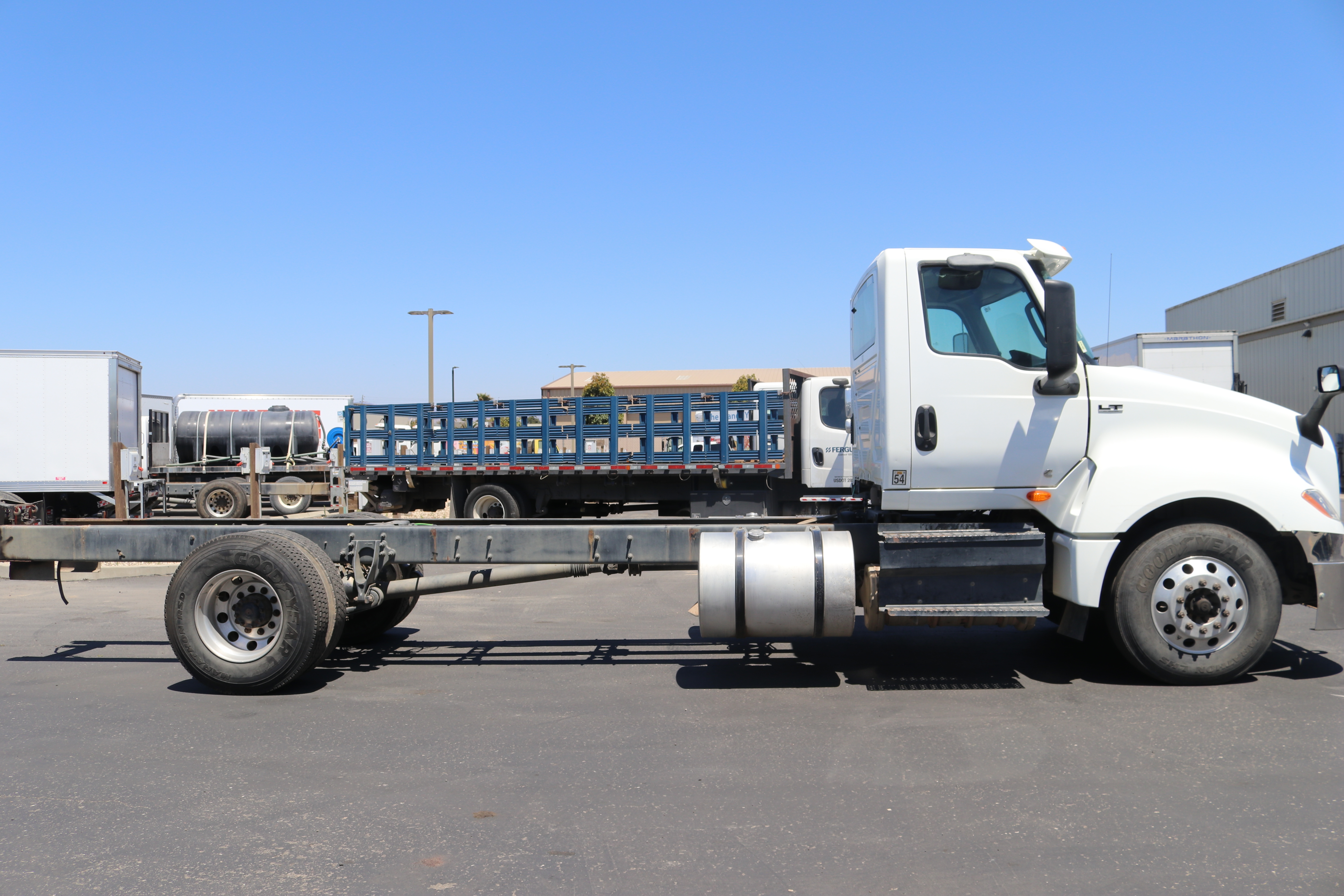 2019 International LT625 4x2, This pre-owned, Class 7 truck is powered by a Cummins X15 engine delivering 505 horsepower, paired with a manual Eaton Fuller 10-speed transmission (FRO/FROF-18210C). It features a long factory chassis and a 234-inch wheelbase, ideal for various heavy-duty applications. With air brakes, rear air suspension, and 11R22.5 wheels/tires, this truck ensures a smooth and reliable ride. It runs on diesel fuel and includes dual 80-gallon fuel tanks (160-gallon total capacity) for extended range. The GVWR is 32,350 lbs., and it has logged approximately 383,000 miles. Located in Ventura, CA, this conventional cab unit is in stock and ready to go. VIN: 3HCDYAPN8KL647952 | Stock #: 9603. Please call (805) 644-3000 for more information.