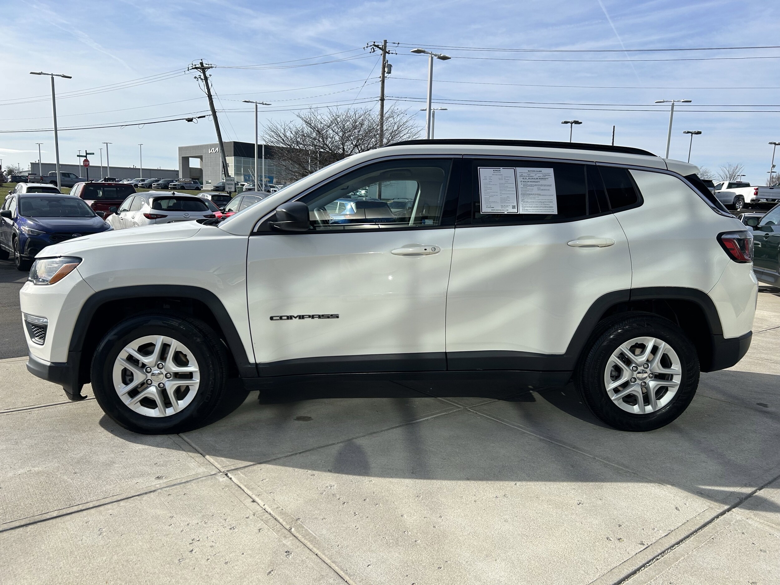 White Clearcoat 2019 Jeep Compass Sport FWD 6-Speed Aisin Automatic 2.4L I4. All vehicles are subject to prior sale. Price does not include applicable tax, title, license, and a $387.00 documentation fee or other fees required by law, lending institutions, and/or lessors. Vehicles shown at different locations are not currently in our inventory (not in stock) but can be made available at our location within a reasonable time after your request. The payment information provided here is not a commitment by any organization to provide credit, leases or other programs.