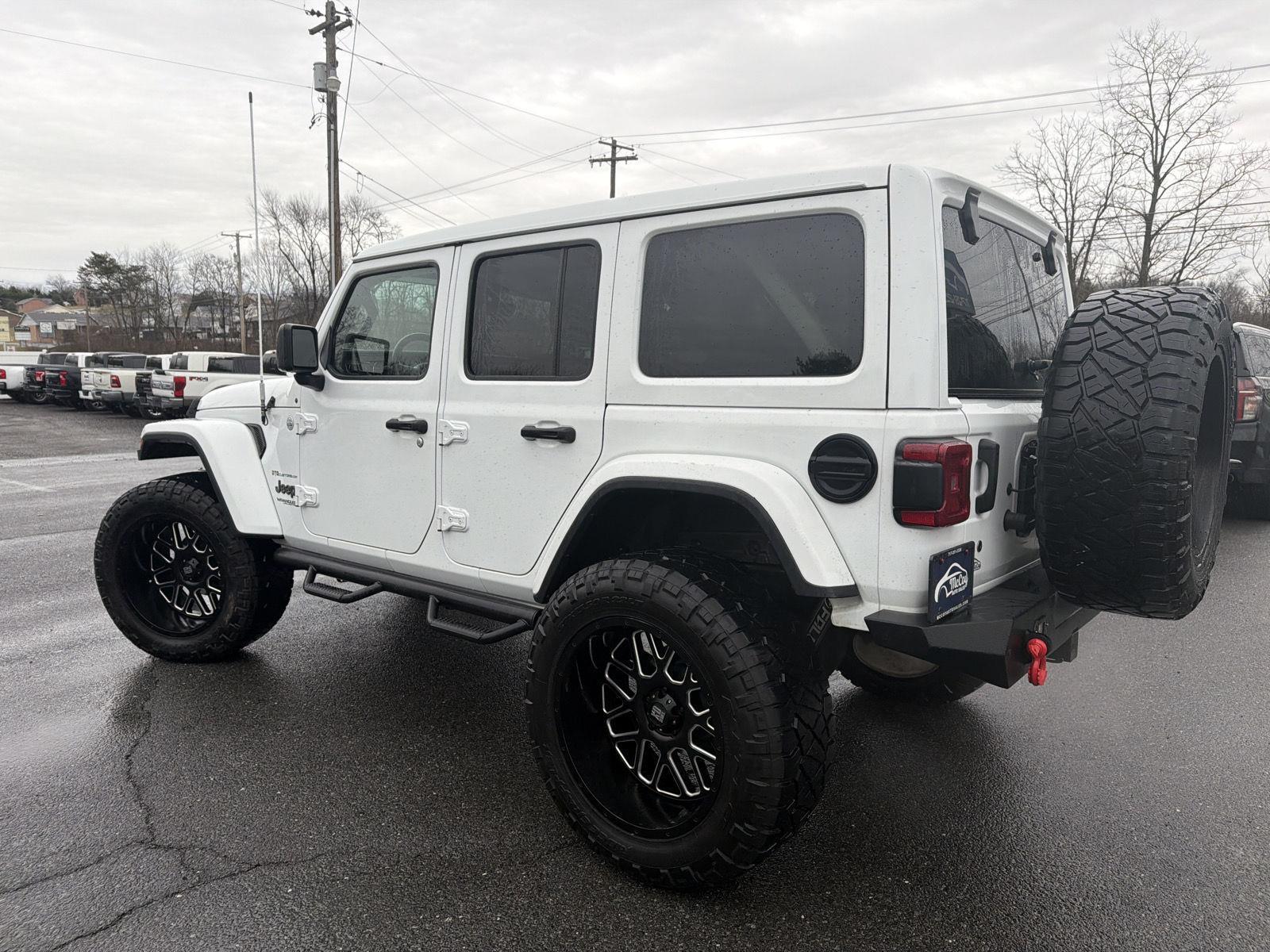 This Bright White Clearcoat 2019 Jeep Wrangler Unlimited Moab is ready to kick grass off road and look good while doing it! It's equipped with an 8 speed automatic, 4 wheel drive, and a powerful 3.6L V6! This MOAB package includes tons of great features. You'll enjoy Android Auto, Apple Car play, GPS navigation, backup camera, auto dimming mirror, and more, PLUS these options: Cold weather group featuring heated seats and wheel, trailer tow group, and Sky One touch power top! Now, on to the fun stuff! You can immediately tell there's an upgraded grille, front bumper, step bars, rear bumper, and winch! Also giving this a great stance is a set of KMC Grenade 2 22" wheels with Nitto Ridge Grappler 37" tires! This is an awesome Wrangler that you'll have to see and drive then make yours, it would be a great addition to your garage!!