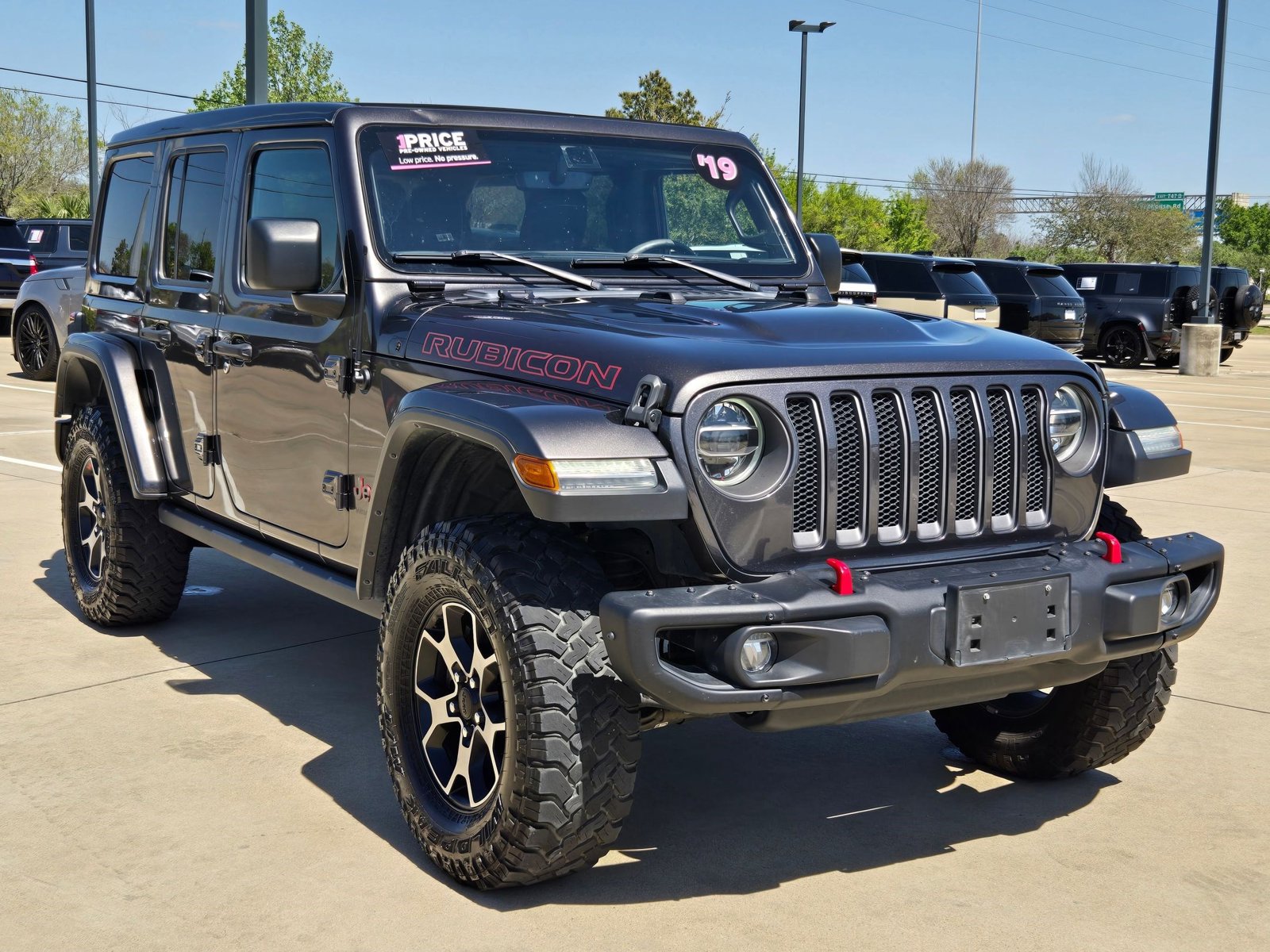 This 2019 Jeep Wrangler Unlimited Rubicon is offered to you for sale by Land Rover West Houston. This Jeep includes: Engine: 3.6L V6 24V VVT UPG I w/ESS. Do so much more with one vehicle. This Jeep Wrangler Unlimited gives you everything you need an automobile to be. Quality and prestige abound with this Jeep Wrangler Unlimited Rubicon. When Jeep created this vehicle with 4 wheel drive, they immediately enhanced the performance ability. Easily switch between two and four wheel drive to take advantage of the improved traction. One of the best things about this Jeep Wrangler Unlimited is that it has low, low mileage. It's ready for you to truly break it in.