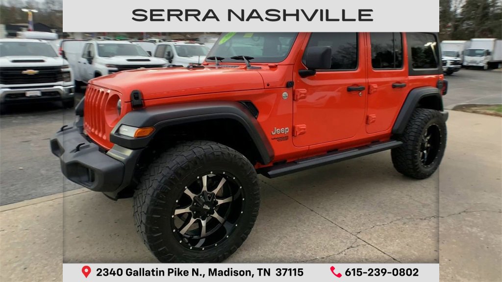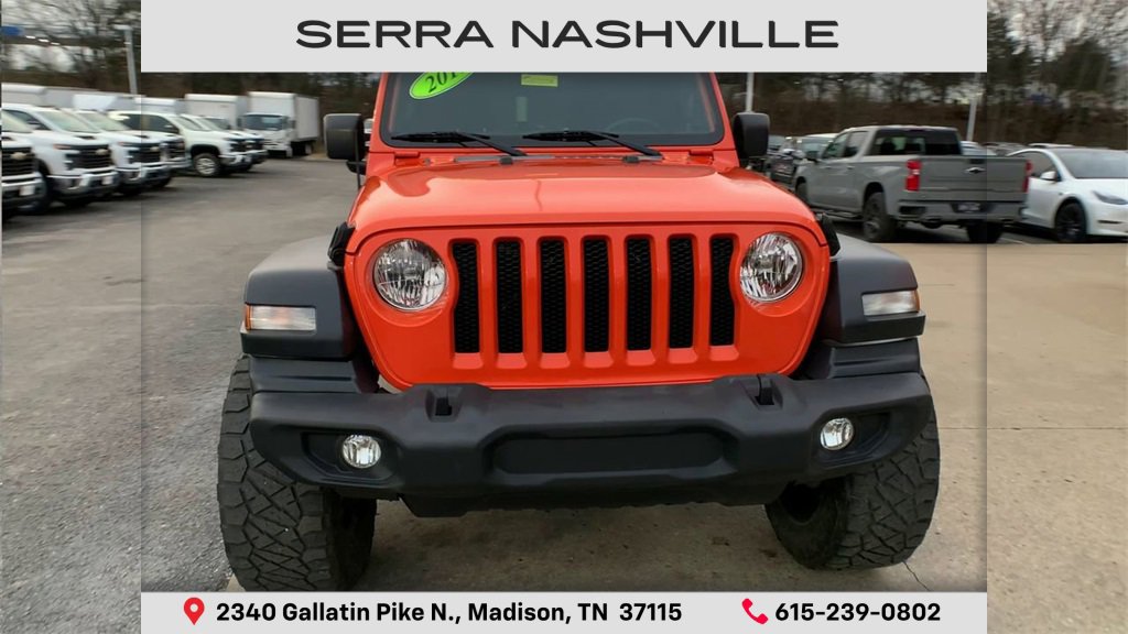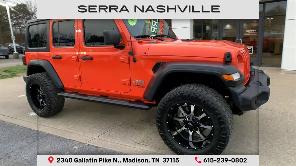 Recent Arrival! Punkn Metallic Clearcoat 2019 Jeep Wrangler Unlimited Sport 4D Sport Utility 4WD 3.6L V6 24V VVT 8-Speed Automatic. Visit the #1 Volume GM dealer in Tennessee - 2340 Gallatin Pike North. Serving the greater Nashville Area. Now serving Antioch, TN - Clarksville, TN - Murfreesboro, TN - Springfield, TN. Welcome to Serra Chevrolet Buick GMC located in Madison, TN. Your premier destination for exceptional automotive experiences in Nashville, TN. Nestled near the heart of Music City, our dealership embodies a commitment to quality, integrity, and customer satisfaction with our Veteran Owned, Value Driven culture. With a vast selection of top-tier Chevrolet, Buick, and GMC vehicles, we cater to a diverse range of preferences, lifestyles and budgets. Our knowledgeable and friendly team is dedicated to guiding you through every step of your car-buying journey, ensuring you find the perfect vehicle to suit your needs. From cutting-edge technology to reliable performance, Serra Chevrolet Buick GMC sets the standard for excellence. Visit your local Nashville dealer, Serra Nashville, today, call (615) 239-0802 or visit us online at www.SerraNashville.com.