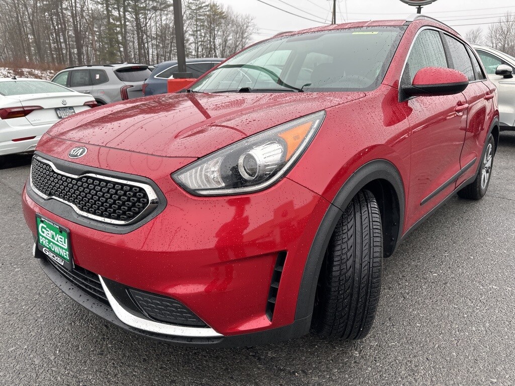 This 2019 Runway Red Kia Niro LX FWD is well equipped and includes these features and benefits. 1.6L I4 DGI Hybrid DOHC 16V LEV3-SULEV30. 6-Speed Dual Clutch 1.6L I4 DGI Hybrid DOHC 16V LEV3-SULEV30 Odometer is 12082 miles below market average! 51/46 City/Highway MPG. Garvey VW KIA is located at 483 Quaker Rd, Queensbury, NY 12804.
