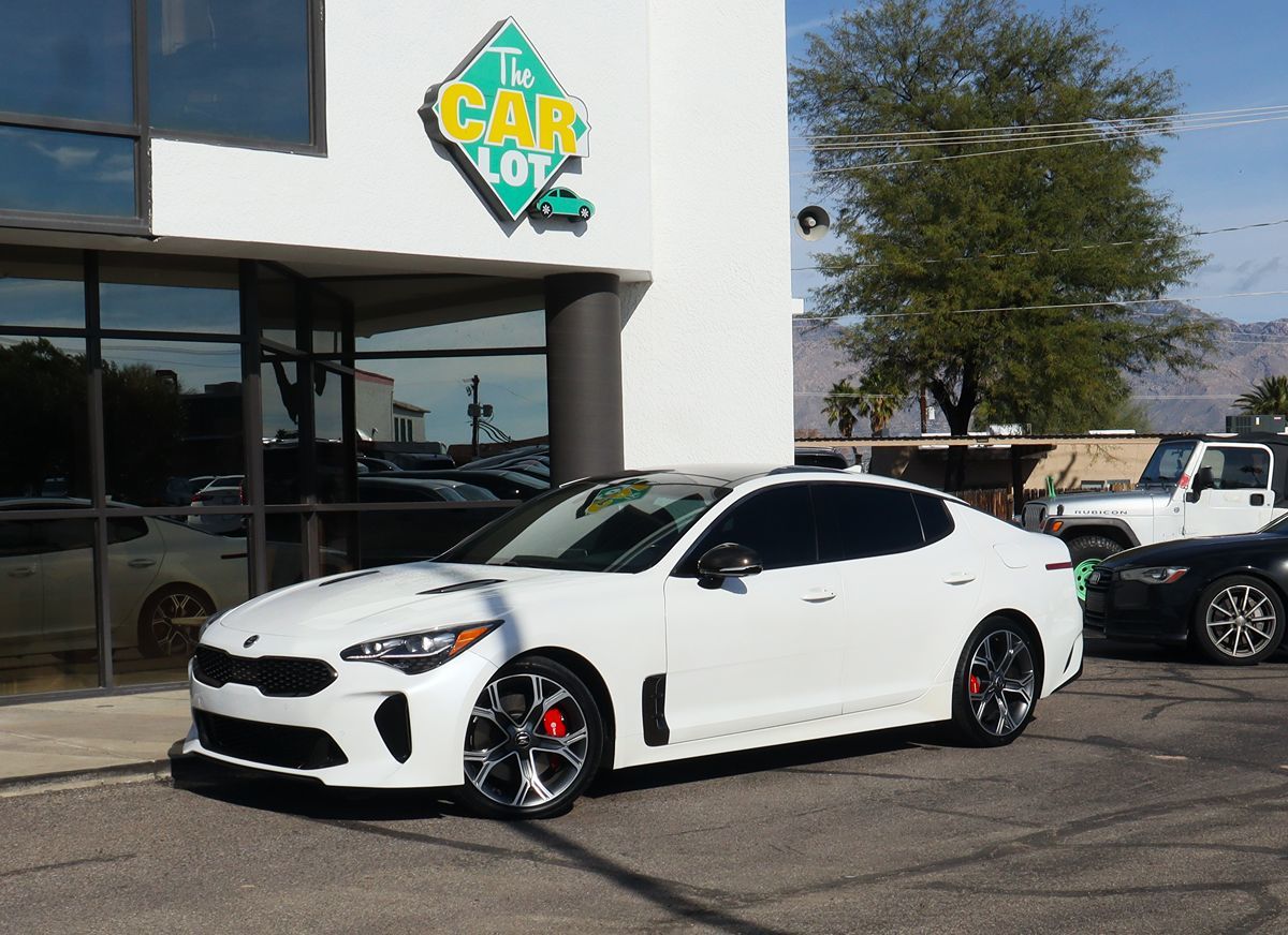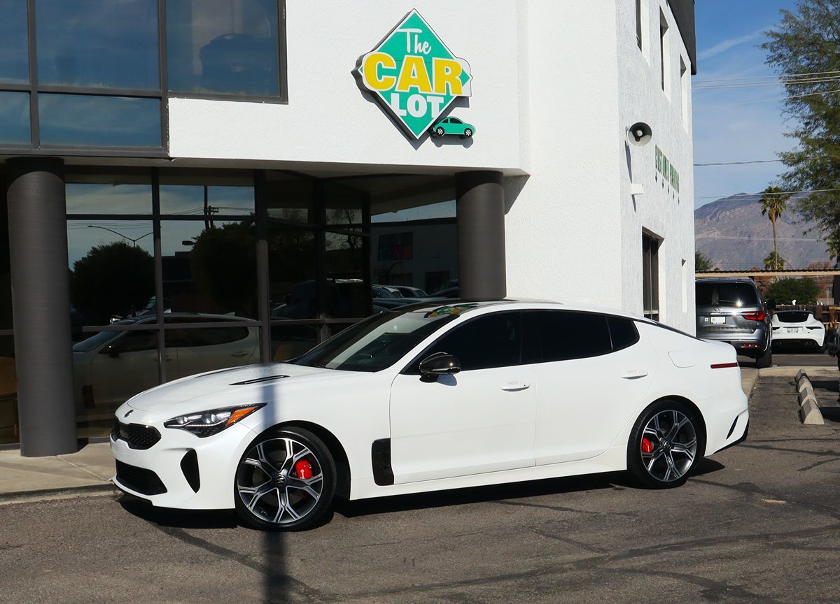 Be the envy of town in our low mile 2019 Kia Stinger GT2 Sedan shown off in a brilliant Snow White Pearl! Powered by a Twin TurboCharged 3.3 Liter V6 that offers 365hp paired with a paddle-shifted 8 Speed Automatic transmission. This Rear Wheel Drive GT2 lets you pass with ease while still scoring nearly 25mpg on the highway! Prepare to turn heads at every corner with an aggressive, glossy black front grille, Brembo brakes, distinct 19-inch alloy wheels wrapped in grippy Michelin Pilot Sport tires, a head-up display, large power sunroof, and LED lighting. Take a seat in the heated and ventilated Nappa leather front seats in our Stinger GT2 and prepare for take-off when you wrap your hands around the leather steering wheel that will make you smile with each shift! Your passengers will be comfortable in the back with heated seats as well. Enjoy top-shelf amenities like Bluetooth® with wireless voice recognition, a 15-speaker Harman/Kardon QuantumLogic premium audio system with a vibrant 8-inch touchscreen display, wireless charging, Android Auto® and Apple CarPlay®, satin chrome accent trim, and even a Smart Key with a pushbutton start that emphasizes the effortlessness and ease of this Kia. This Stinger GT2 from Kia has safety as a top priority with advanced features such as cornering brake control, electronic stability control, a backup camera, brake fade compensation, lane keep assist, hill start assist, an army of airbags, and much more all combine to enhance the well-being of your Kia and those on the road with you! This Stinger is a prime choice for your driving needs Save this Page and Call for Availability. We Know You Will Enjoy Your The Car Lot Test Drive Towards Ownership!