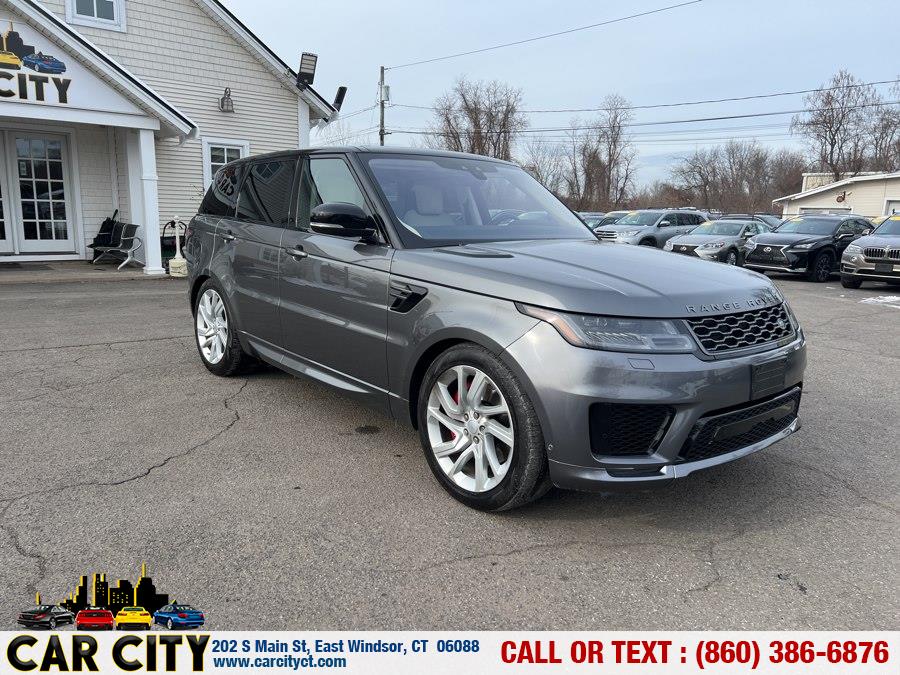 2019 Land Rover Range Rover Sport V8 Supercharged Dynamic, available for sale in East Windsor, Connecticut. This vehicle features a Bosphorus Grey Metallic exterior with an Ivory/Ebony/Eb/Ivory leather interior and is equipped with a 5.0L V8 Supercharged engine and an 8-speed automatic transmission. The car offers a luxurious driving experience with advanced features and a spacious, comfortable interior. Please confirm the accuracy of the specifications provided above with the dealer's representative.