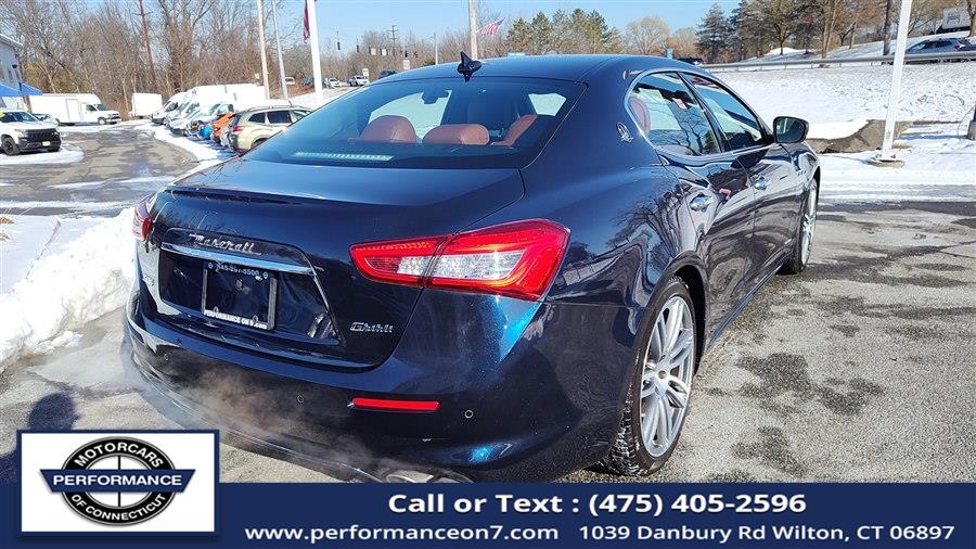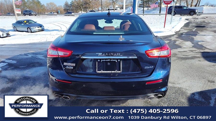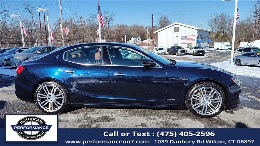 This 2019 Maserati Ghibli S Q4 GranLusso 3.0L is available for sale in Wilton, Connecticut at Performance Motor Cars Of Connecticut LLC. The vehicle features a Blue exterior and Zegna Silk & Leather upholstery interior. It is equipped with an All Wheel Drive system and a 3.0L Twin Turbo V6 engine. The car has been personally chosen for its clean, low mileage, and well maintained condition, offering a blend of luxury and performance.