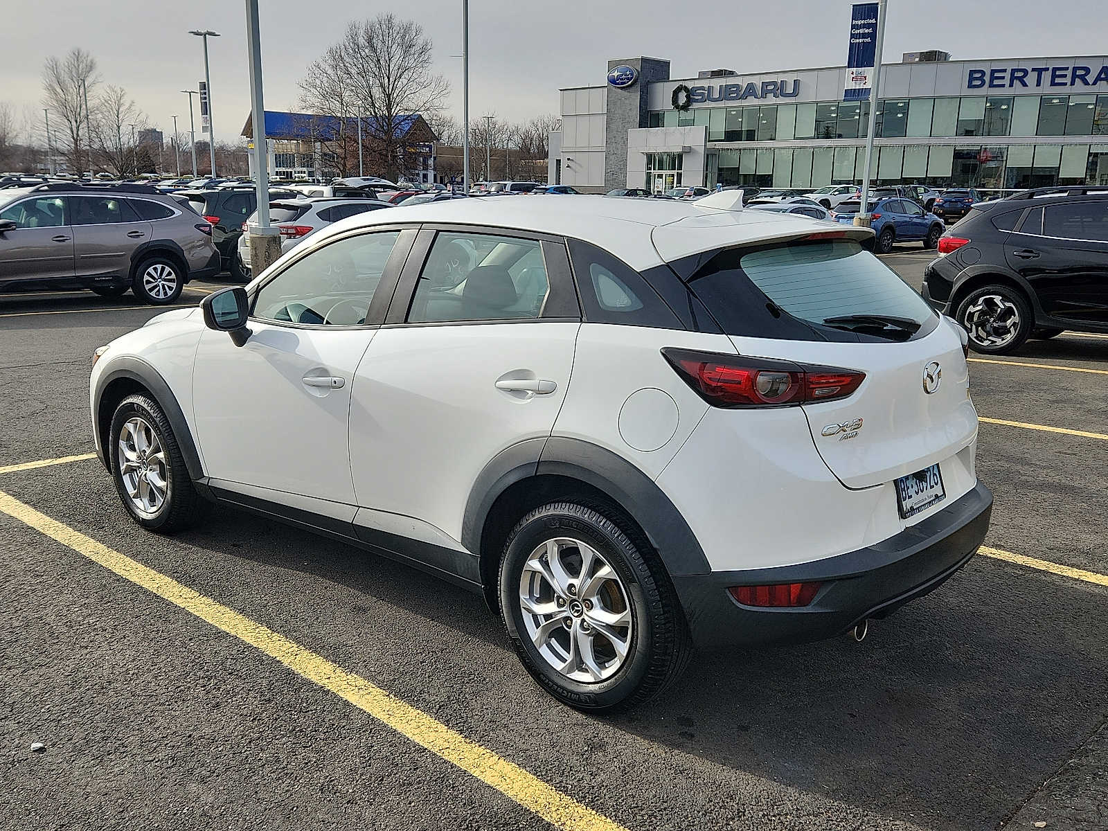 Snowflake White Pearl exterior and Black interior. Fuel efficient 32 MPG Hwy/27 MPG City! Onboard Communications System, iPod/MP3 Input, Back-Up Camera, Alloy Wheels, All-weather floor mats, Sport I-ACTIVSENSE Package, All Wheel Drive. Mazda CX-3 Sport with Snowflake White Pearl exterior and Black interior features a 4 Cylinder Engine with 148 HP at 6000 RPM. Edmunds.com's review says Mazda's compact crossover is agile and communicative. Turn-in is crisp and accurate, and the CX-3 is easy to guide around turns.