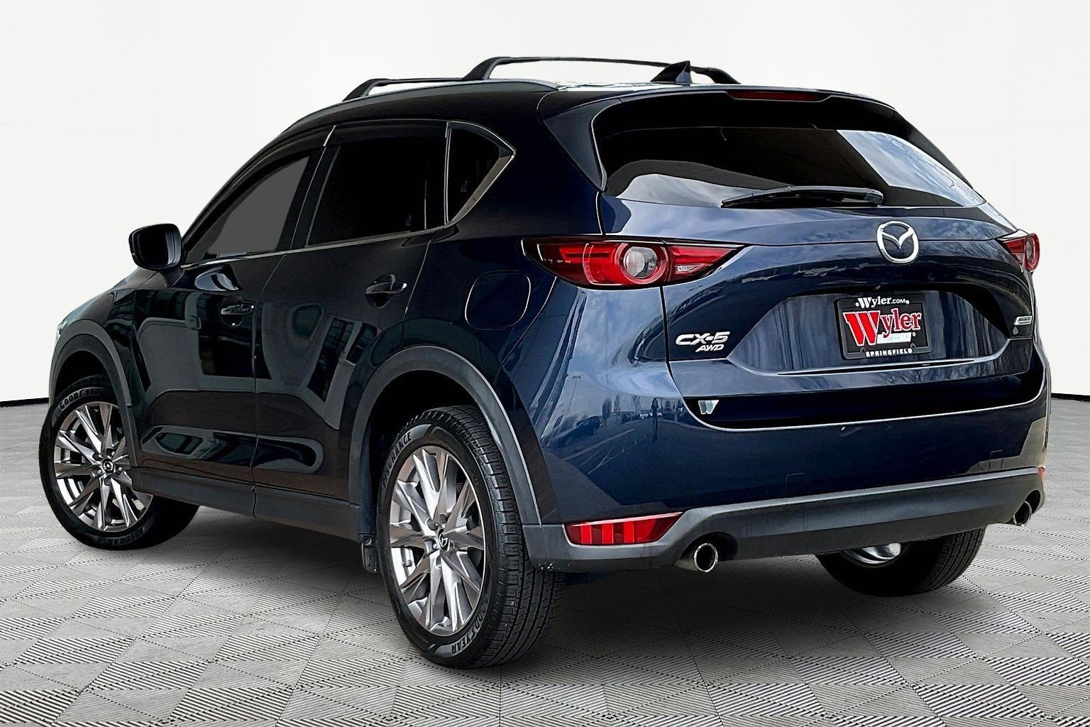 Jeff Wyler Springfield Auto Mall is delighted to offer this good-looking 2019 Mazda CX-5 Grand Touring in Deep Crystal Blue Mica. Well equipped with: GT Premium Package (Active Driving Display (Windshield Type), Auto-Fold Door Mirror, Heated Rear Seats, Heated Steering Wheel, Ventilated Front Seats, and Windshield Wiper De-Icer), 10 Speakers, 4-Wheel Disc Brakes, 4.624 Axle Ratio, ABS brakes, Air Conditioning, Alloy wheels, AM/FM radio: SiriusXM, AppLink/Apple CarPlay and Android Auto, Auto High-beam Headlights, Auto-dimming Rear-View mirror, Automatic temperature control, Bose 10-Speaker Audio Sound System, Brake assist, Bumpers: body-color, Delay-off headlights, Driver door bin, Driver vanity mirror, Dual front impact airbags, Dual front side impact airbags, Electronic Stability Control, Emergency communication system, Exterior Parking Camera Rear, Four wheel independent suspension, Front anti-roll bar, Front Bucket Seats, Front Center Armrest, Front dual zone A/C, Front fog lights, Front reading lights, Fully automatic headlights, Garage door transmitter: HomeLink, Heated door mirrors, Heated front seats, Heated Front Sport Seats, Illuminated entry, Leather Seat Trim, Leather Shift Knob, Low tire pressure warning, Mazda Navigation System, Memory seat, Navigation system: MAZDA CONNECT, Occupant sensing airbag, Outside temperature display, Overhead airbag, Overhead console, Panic alarm, Passenger door bin, Passenger vanity mirror, Power door mirrors, Power driver seat, Power Liftgate, Power moonroof, Power passenger seat, Power steering, Power windows, Radio data system, Radio: AM/FM/HD Audio System, Rain sensing wipers, Rear anti-roll bar, Rear reading lights, Rear seat center armrest, Rear window defroster, Rear window wiper, Remote keyless entry, Roof Rack Side Rails, Speed control, Speed-sensing steering, Split folding rear seat, Spoiler, Steering wheel mounted audio controls, Tachometer, Telescoping steering wheel, Tilt steering wheel, Traction control, Trip computer, Turn signal indicator mirrors, Variably intermittent wipers, and Wheels: 19" x 7J Aluminum Alloy w/Silver Finish. Awards: * 2019 KBB.com Brand Image Awards Ask about available certifications. Used vehicles 10 years of age or newer with less than 100,000 miles are eligible for the Wyler Assurance Program, but eligible vehicles must pass our reconditioning process and multi-point inspection. Provided the vehicle passes inspection, vehicles will be eligible for the 6 month/6,000 mile limited warranty. The 6 month/6,000 mile limited warranty is NOT available on AS-IS vehicles, wholesale vehicles, lease buyback/pass-thru vehicles or un-inspected vehicles. Note that this program can also apply to vehicles where the remaining factory coverage is less than 6 months or 6,000 miles. Please check the Federal Trade Commission (FTC) Buyers guide on the vehicle for full details as to whether or not warranty coverage may apply. Contact Dealer for additional details. The Wyler Assurance 6 month/6,000 Mile limited warranty ends 6 months from the date of the Retail Purchase Agreement (BUYERS ORDER) or when the vehicle's odometer registers 6,000 additional miles to the mileage listed on the BUYERS ORDER, whichever comes first. Your Deductible - The warranty holder on your contract pays the first $100 of each covered repair.