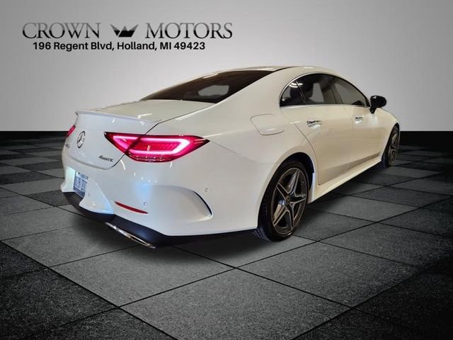 Diamond White 2019 Mercedes-Benz CLS CLS 450 4MATIC 4MATIC 9-Speed Automatic I6. Low miles, local trade in, 4MATIC, 13 Speakers, 4-Wheel Disc Brakes, ABS brakes, Air Conditioning, Alloy wheels, AM/FM radio: SiriusXM, Apple CarPlay/Android Auto, Auto tilt-away steering wheel, Auto-dimming door mirrors, Auto-dimming Rear-View mirror, Automatic temperature control, Brake assist, Bumpers: body-color, Child-Seat-Sensing Airbag, Compass, Delay-off headlights, Driver door bin, Driver vanity mirror, Dual front impact airbags, Dual front side impact airbags, Electronic Stability Control, Emergency communication system: eCall Emergency System, Exterior Parking Camera Rear, Four wheel independent suspension, Front anti-roll bar, Front Bucket Seats, Front Center Armrest, Front dual zone A/C, Front reading lights, Fully automatic headlights, Garage door transmitter: Homelink, Genuine wood dashboard insert, Genuine wood door panel insert, Headlight cleaning, Heated door mirrors, Heated front seats, Heated Power Front Bucket Seats, Illuminated entry, Knee airbag, Leather Upholstery, Low tire pressure warning, Memory seat, Navigation system: COMAND, Occupant sensing airbag, Outside temperature display, Overhead airbag, Overhead console, Panic alarm, Passenger door bin, Passenger vanity mirror, Power door mirrors, Power driver seat, Power moonroof, Power passenger seat, Power steering, Power windows, Premium audio system: COMAND, Radio data system, Radio: COMAND Navigation System, Rain sensing wipers, Rear anti-roll bar, Rear reading lights, Rear seat center armrest, Rear window defroster, Remote keyless entry, Security system, Speed control, Speed-sensing steering, Split folding rear seat, Steering wheel memory, Steering wheel mounted audio controls, Tachometer, Telescoping steering wheel, Tilt steering wheel, Traction control, Trip computer, Turn signal indicator mirrors, Variably intermittent wipers. Wheels: 19" Twin Multi-Spoke.