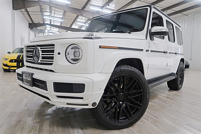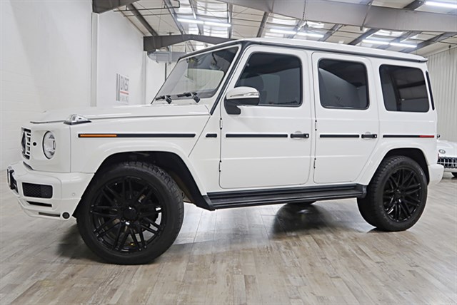 This 2019 Mercedes-Benz G550 features a clean Carfax and 47K miles. It comes in Polar White with a Black leather interior and is equipped with Brabus extras. The vehicle includes a Brabus sound system, heated/cooled seats, moon roof, and back-up camera.