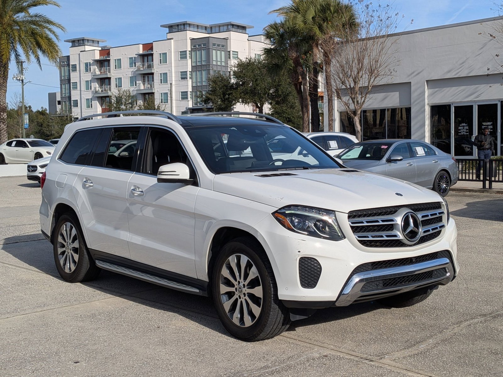 This outstanding example of a 2019 Mercedes-Benz GLS GLS 450 is offered by Mercedes-Benz of Orlando. This Mercedes-Benz includes: Wheel Locking Bolts (PIO) Wheel Locks Polar White 3-Zone Automatic Climate Control Multi-Zone A/C A/C Climate Control Rear A/C Premium 1 Package Keyless Start Smart Device Integration HD Radio Navigation System Seat Memory Satellite Radio Power Door Locks Keyless Entry Hard Disk Drive Media Storage MP3 Capability Appearance Package Tires - Front Performance Aluminum Wheels Tires - Rear Performance Running Boards/Side Steps 2nd Row Power Easy-Entry Anthracite Poplar Wood Trim Woodgrain Interior Trim Black Headliner Trailer Hitch Lane Tracking Package Lane Departure Warning Blind Spot Monitor Harman/Kardon Logic7 Surround Sound System Premium Sound System Lighting Package Headlights-Auto-Leveling Heated & Cooled Front Cup Holders Illuminated Star (PIO) Panorama Roof Generic Sun/Moonroof Dual Moonroof Rear Seat Entertainment System Pre-Wiring. Off-road or on the street, this Mercedes-Benz GLS GLS 450 handles with ease. You deserve a vehicle designed for higher expectations. This Mercedes-Benz GLS GLS 450 delivers with a luxurious, well-appointed interior and world-class engineering. No matter the weather conditions or terrain, this Polar White AWD Mercedes-Benz GLS GLS 450 handles with an elegant confidence. Fine interior appointments complement this vehicle's unprecedented performance. The incredibly low mileage and painstaking upkeep on this Mercedes-Benz GLS makes it a once-in-a-lifetime deal that won't last long! Call us today to reserve your test drive! You can take the guesswork out of searching for your destination with this Mercedes-Benz GLS GLS 450's installed Navigation system.