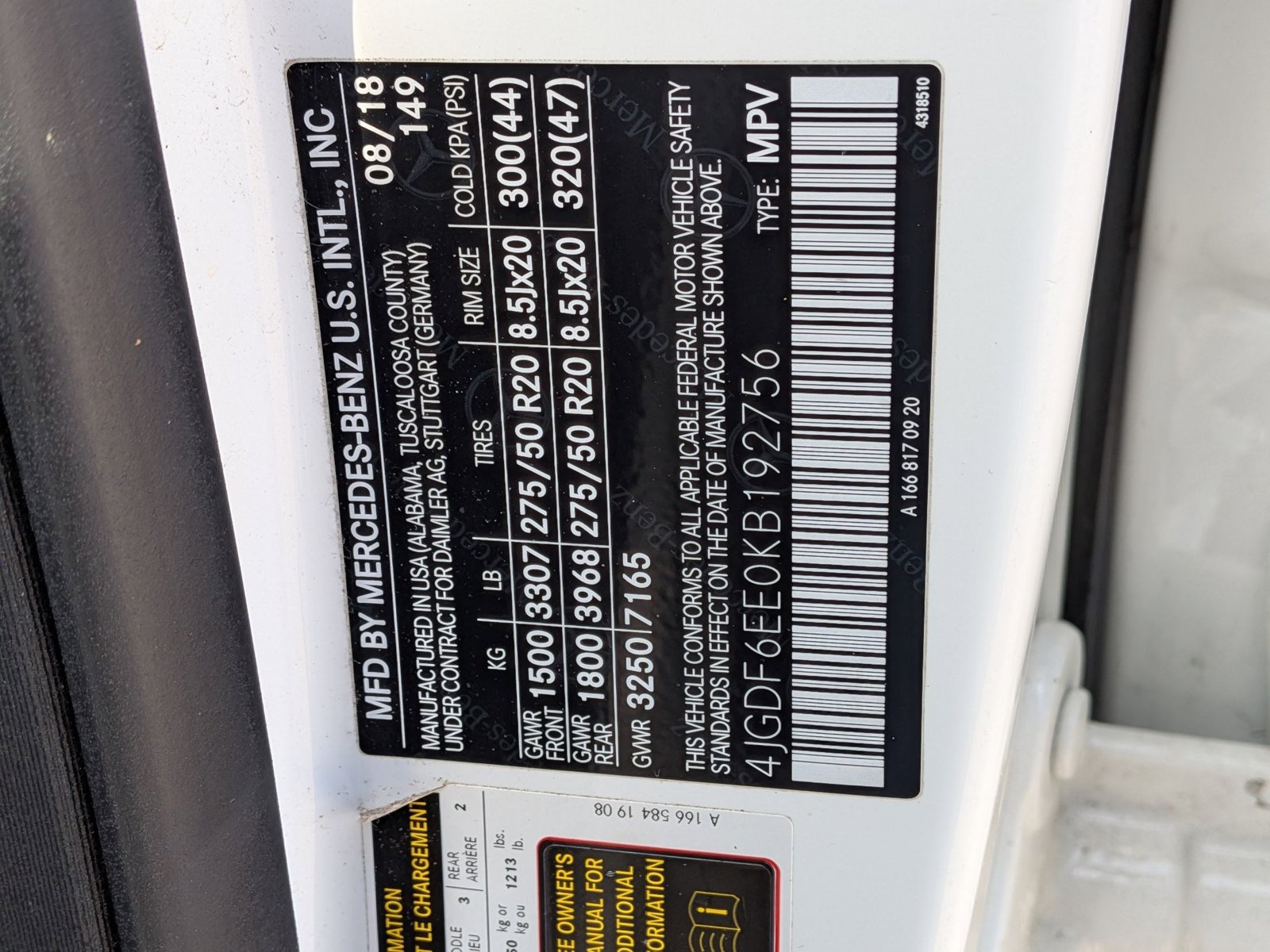 VIN: 4JGDF6EE0KB192756