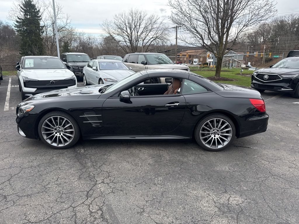 Experience the pinnacle of open-air luxury and grand touring performance in this 2019 Mercedes-Benz SL 550, finished in the timeless Obsidian Black Metallic with a rich Saddle Brown leather interior. This sixth-generation SL remains a benchmark for the retractable-hardtop roadster, offering the structural integrity of a coupe with the exhilarating freedom of a convertible at the touch of a button. This SL 550 is a one-owner, clean CARFAX, local trade-in that exemplifies the highest standard of luxury car ownership. Powered by a 4.7L biturbo V8 engine producing 449 horsepower and 516 lb-ft of torque, it effortlessly glides from 0 to 60 mph in just 4.3 seconds. This vehicle is being offered by Germain Volvo of North Hills with a history of meticulous care and a commanding presence. The specification of this roadster is truly exceptional, featuring the rare and innovative Magic Sky Control panoramic roof, which allows you to electronically adjust the tint of the glass from transparent to dark. The cabin experience is further elevated by the Driver Assistance Package including Distronic cruise control and steering assist, along with soft-close doors and the athletic stance provided by the 19-inch AMG Multi-Spoke wheels. Unrivaled prestige, effortless power, and cutting-edge technology come together in this 2019 Mercedes-Benz SL 550. Available now at Germain Volvo of North Hills contact us today to schedule your private viewing and test drive.
